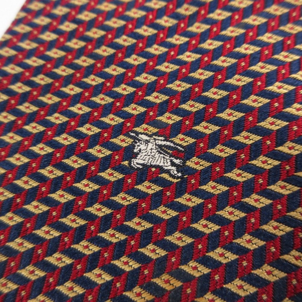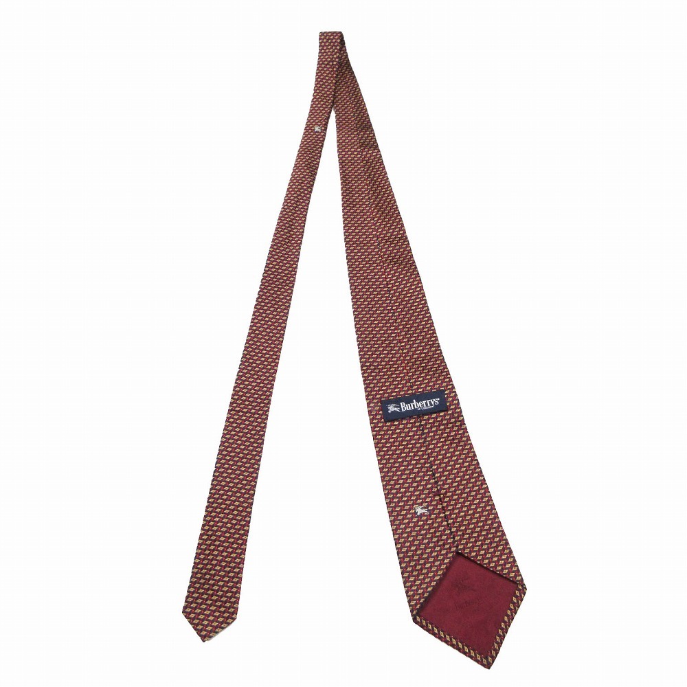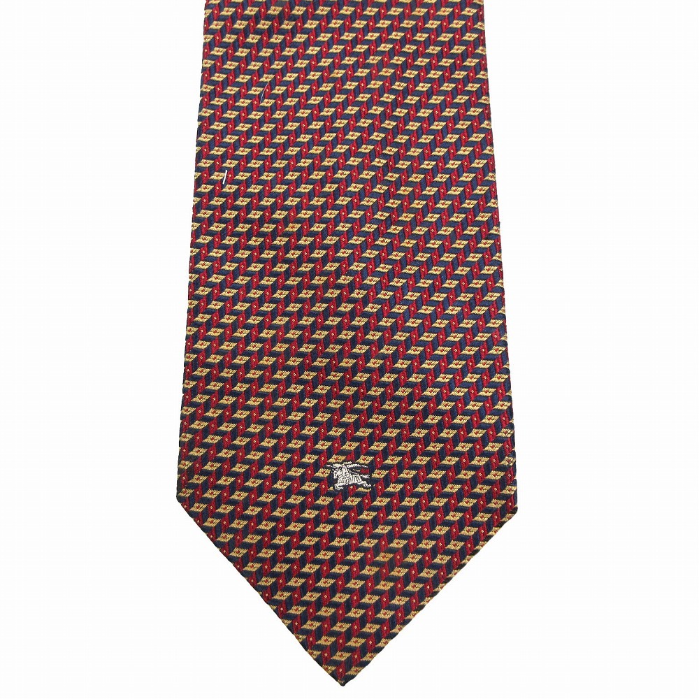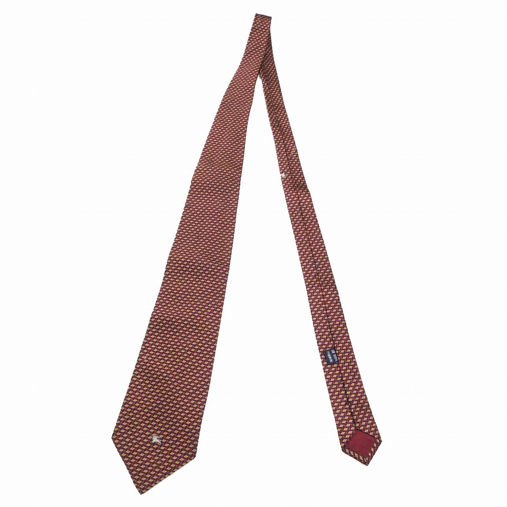 【バーバリーズ BURBERRYS シルク 小紋柄 ホースマーク 総柄 ネクタイ ワイドタイ 絹 エンジ マルチカラー ur65】 | |
