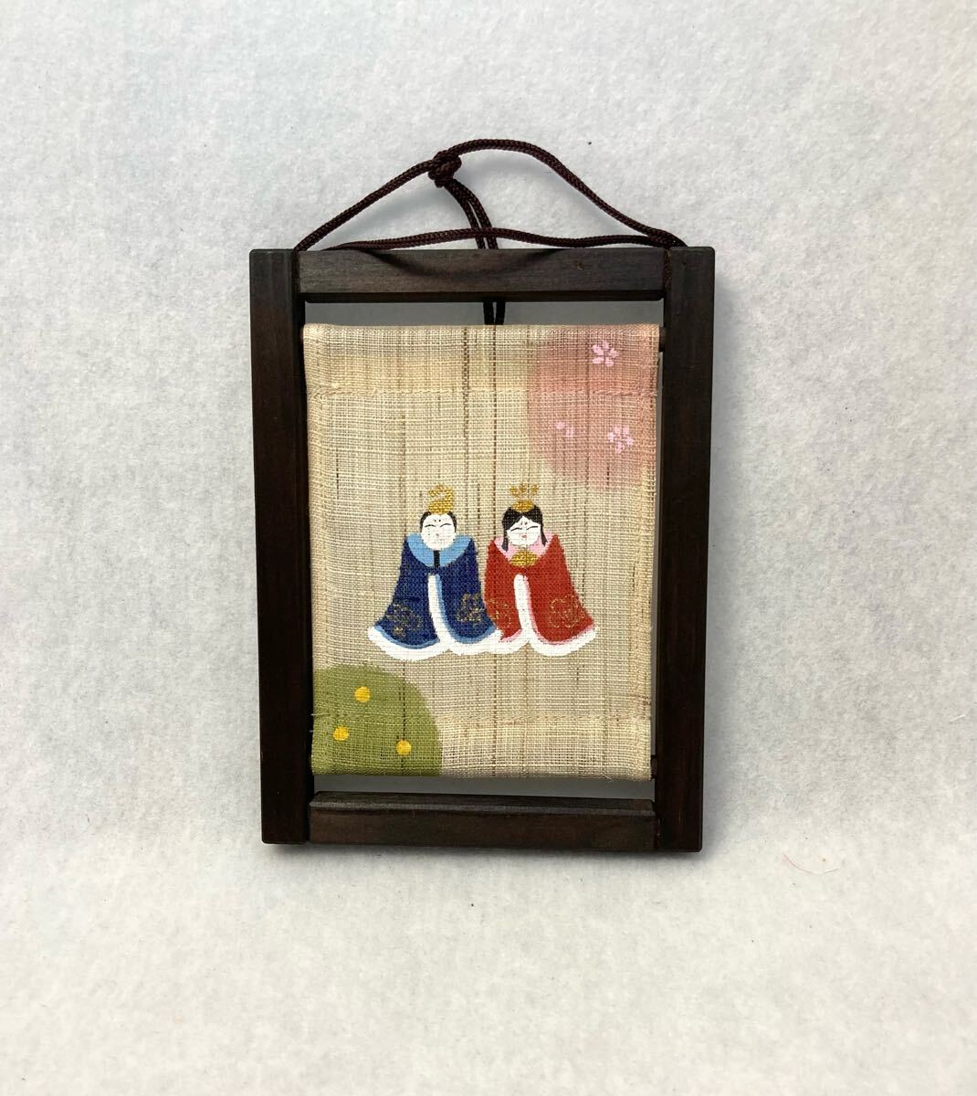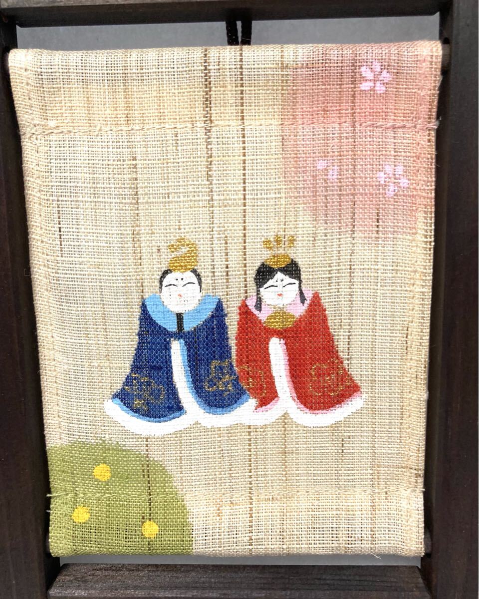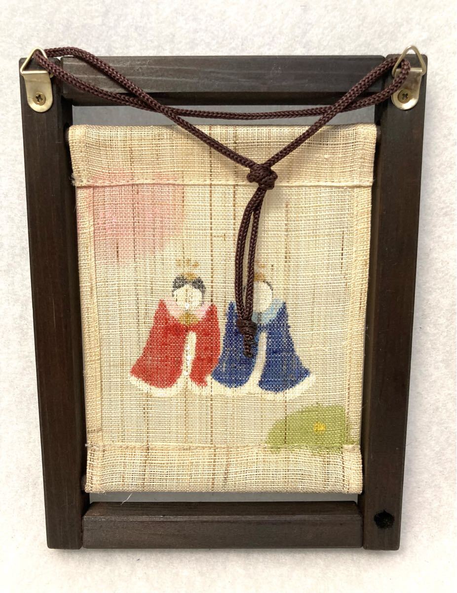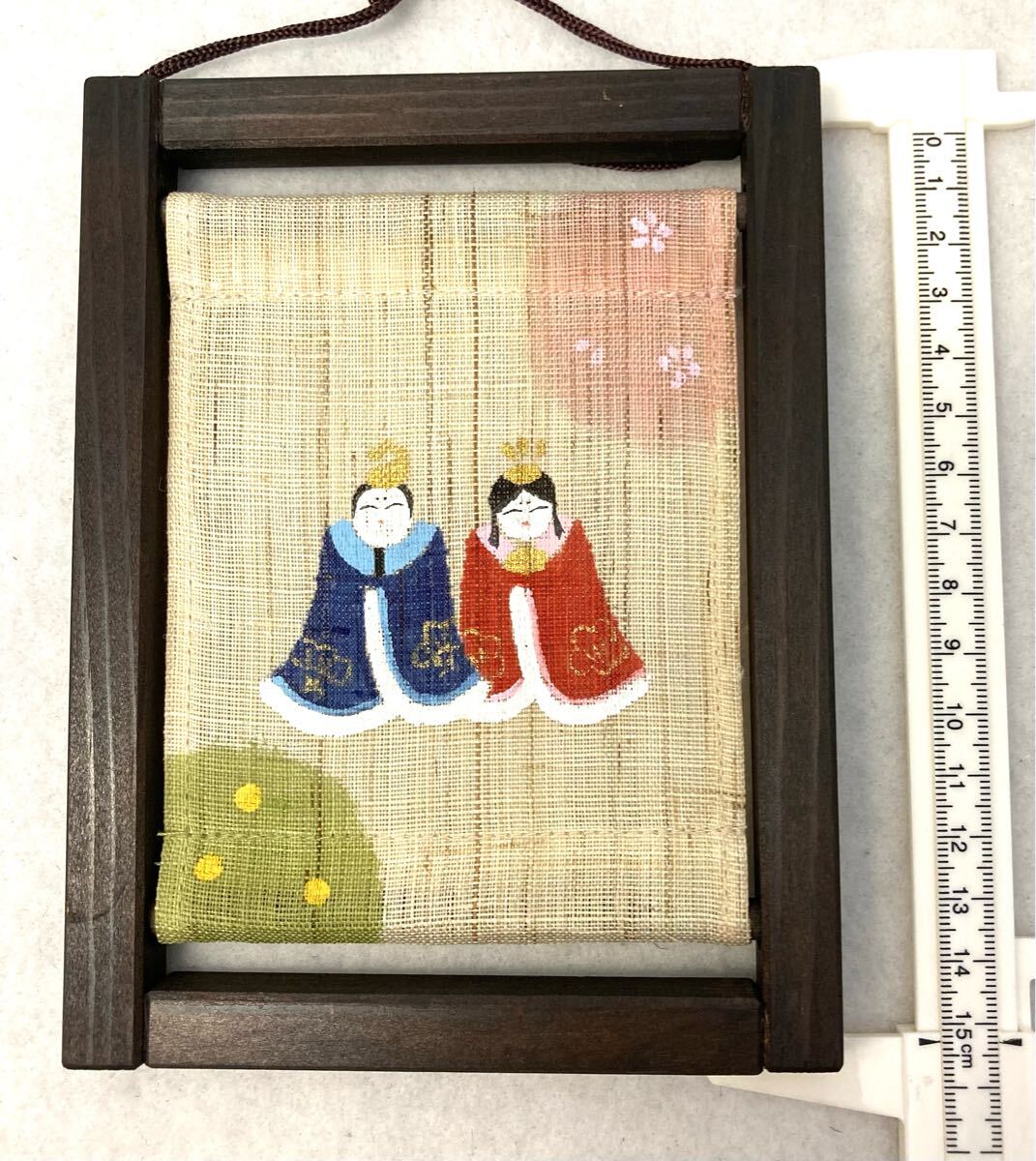 送料無料♪ ポストカードサイズ *麻に手描きのおひなさま* 木フレーム付き・招福・レトロ・縁起物・女の子・ひな祭♪     光賀堂