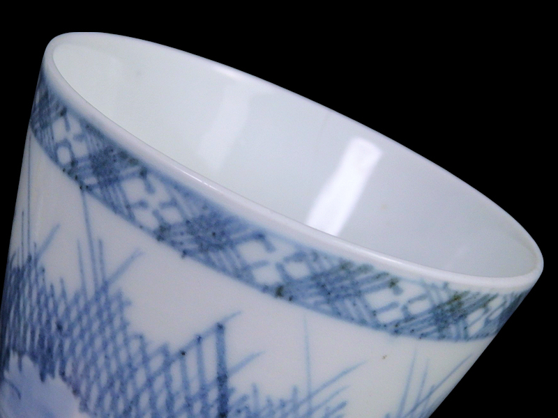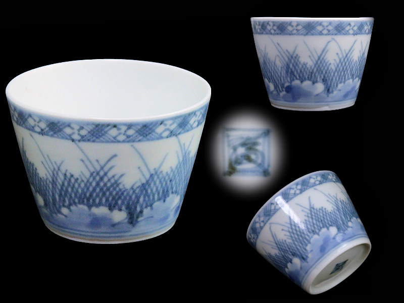 ★華心★ CYl-E760mS 古伊万里 染付 雪輪に葦の図 蕎麦猪口