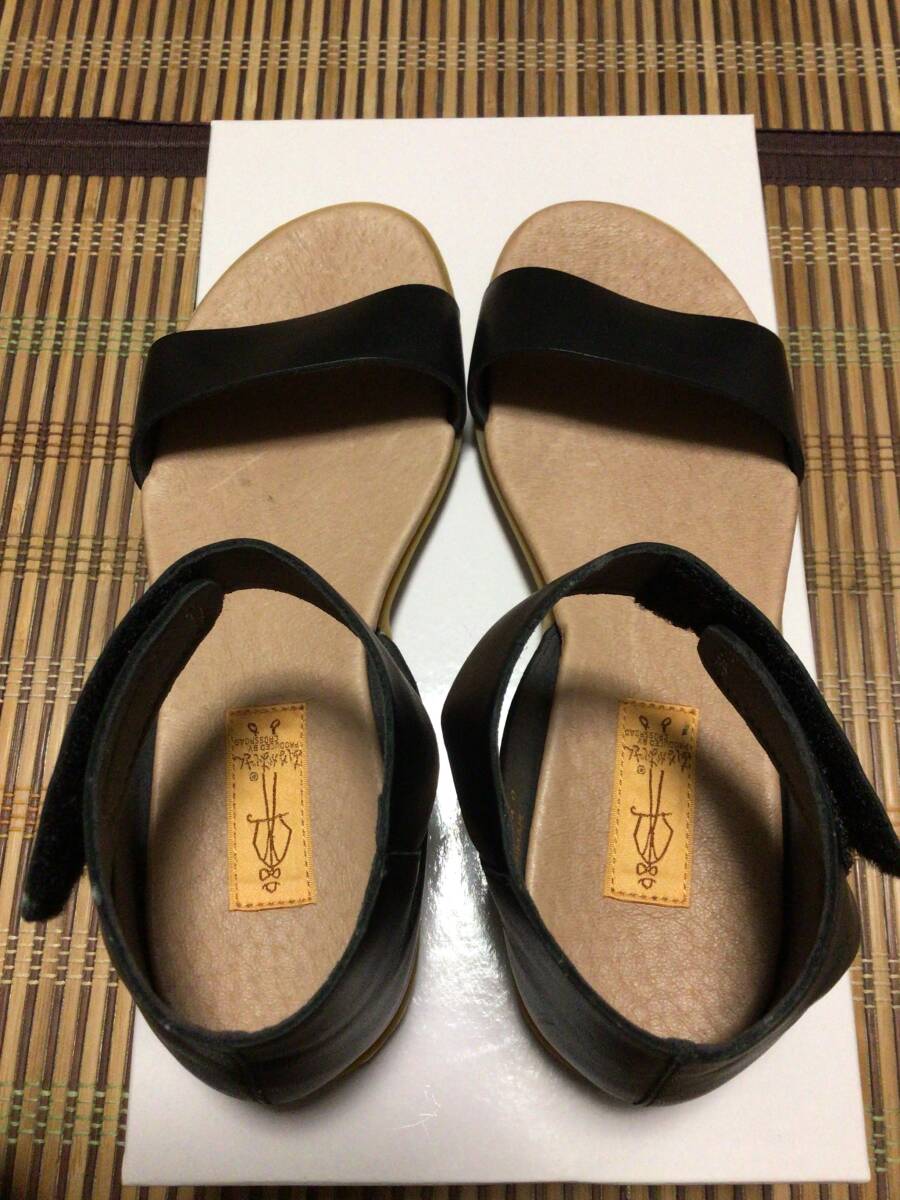新品 未使用 あしながおじさん サンダル 黒 ブラック 皮革 革靴 24cm 1ー廊