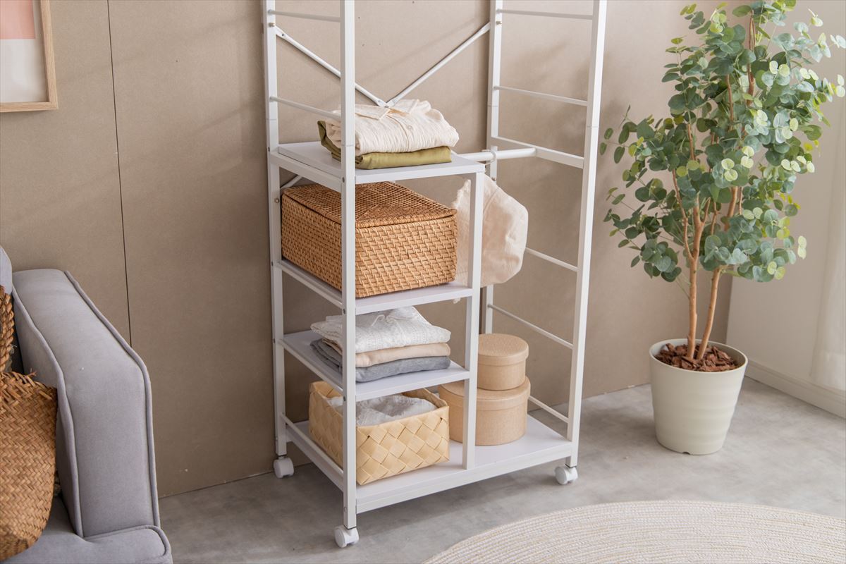 理想のスタイルを叶えつつ、1台にまとめて収納できる多機能な『Tito(ティート)』シリーズの棚付きハンガーラック。