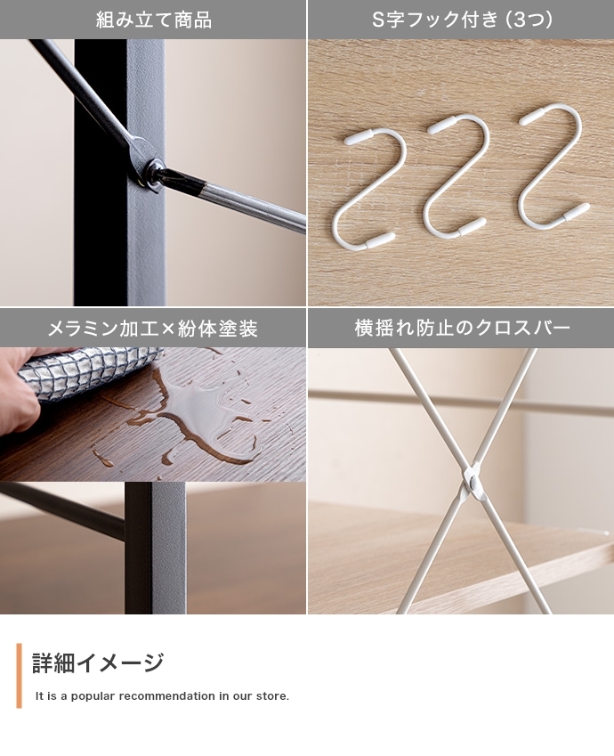 また、取り外し可能なショートハンガーバーも付いており、外して使うことでロングコートをかけることも可能。