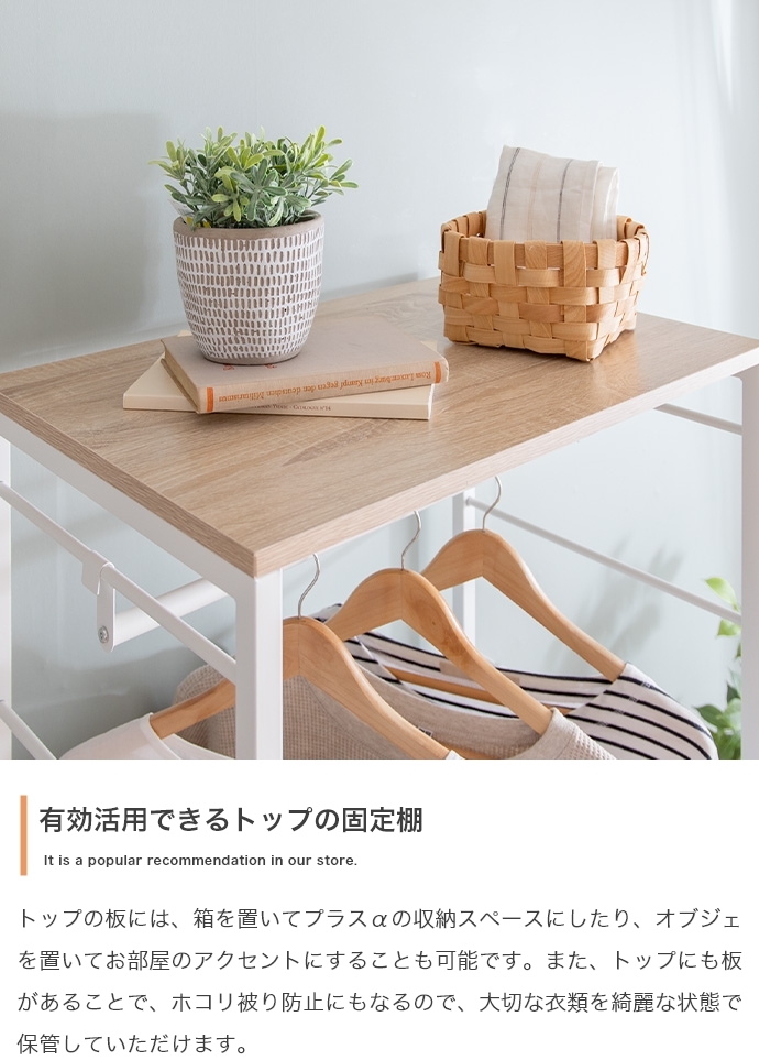 【耐荷重】トップ固定棚:約5kg、各ハンガーバー:約5kg