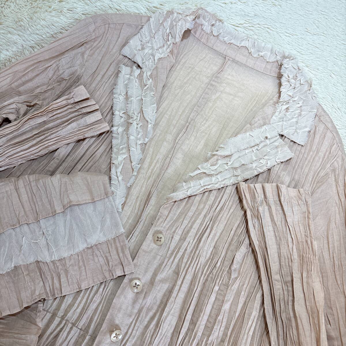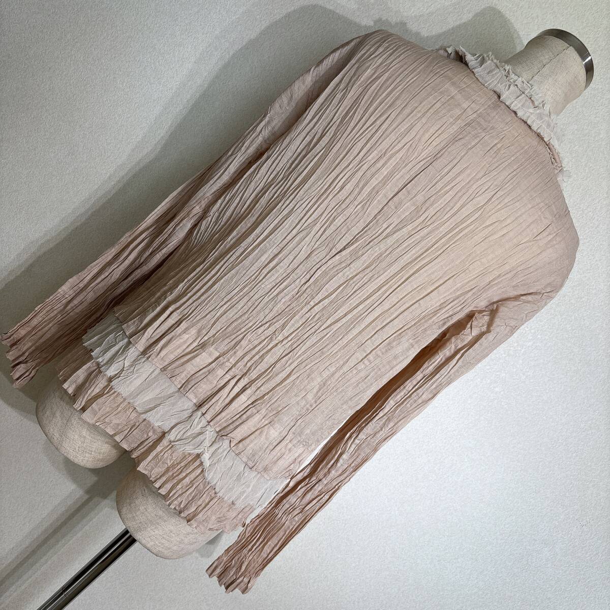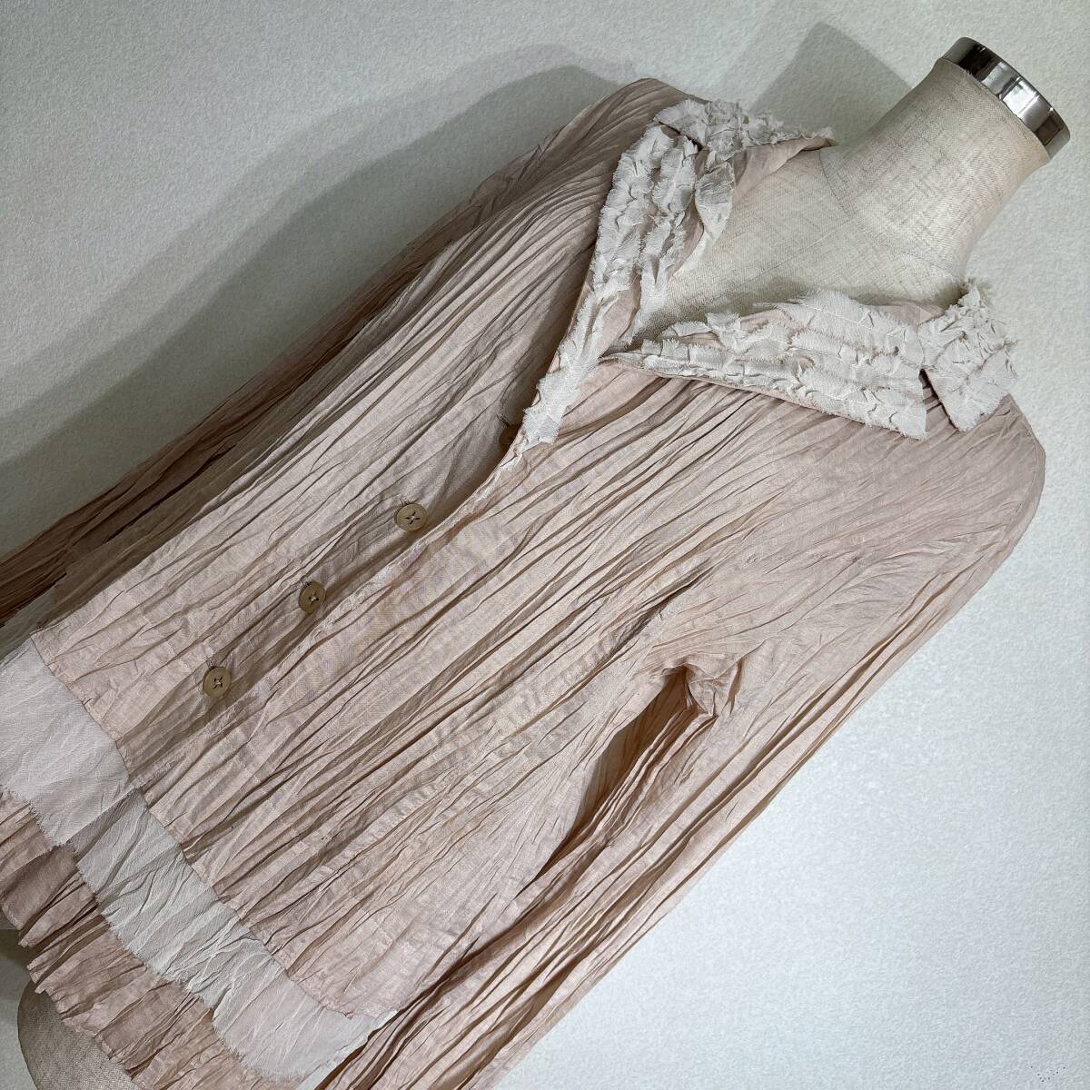 C325大きい!■レリアン★薄ベージュ/シワ加工&シフォントリミング★ジャケット■13+ | ||||||||||||||||||||