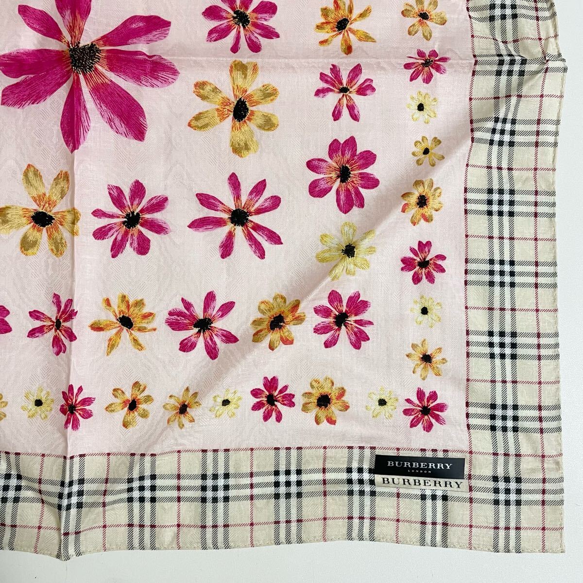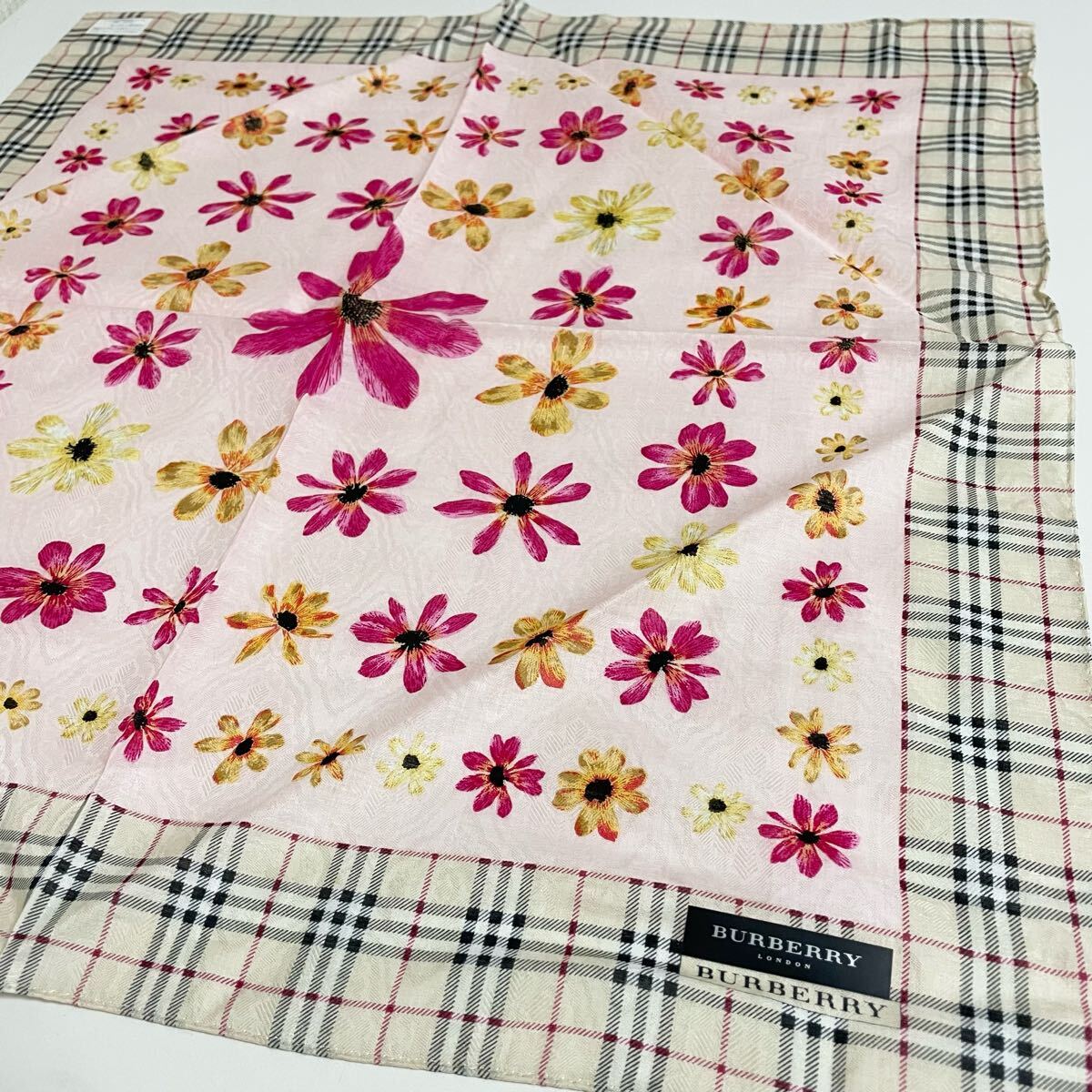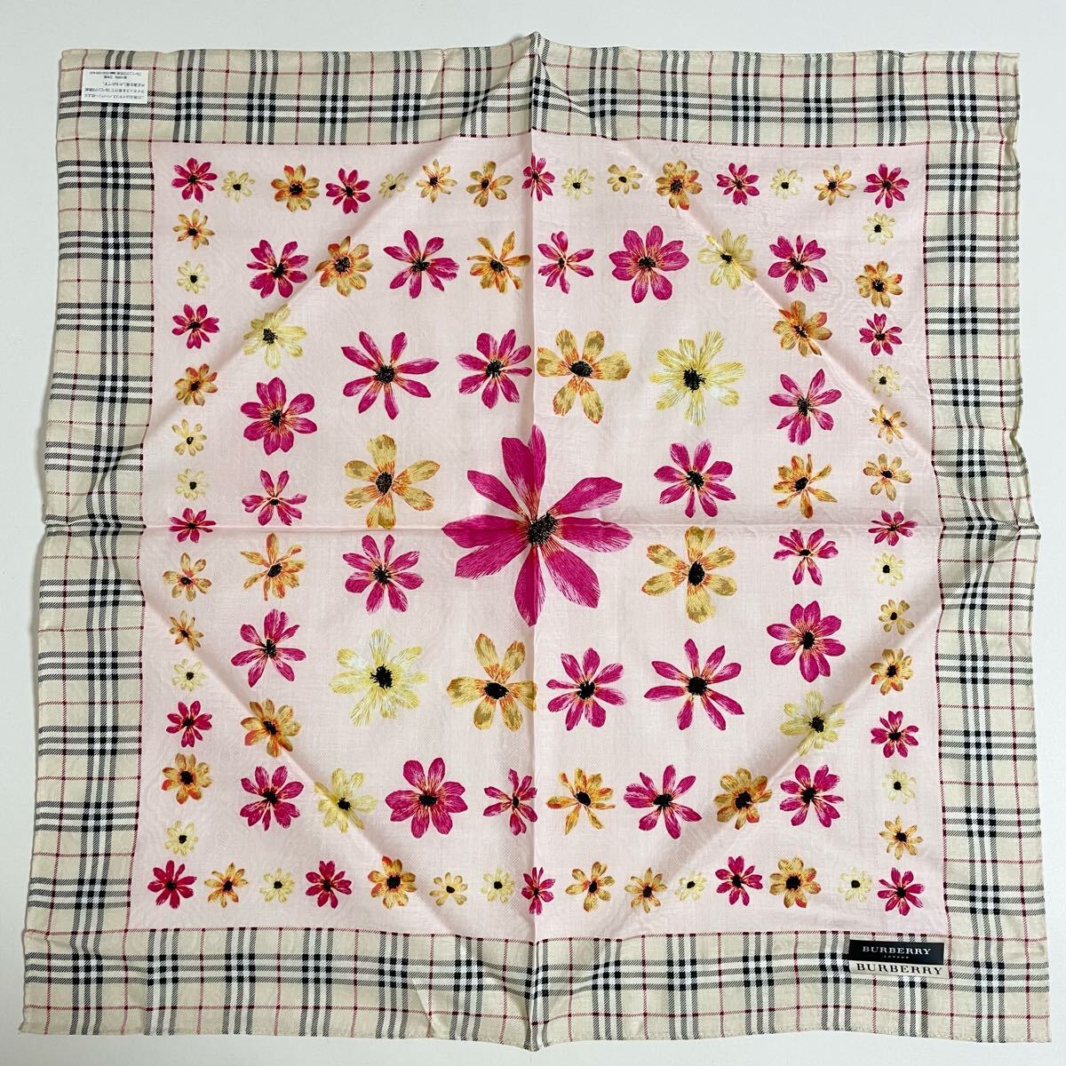 即決☆BURBERRY バーバリー ノバチェック 花柄 ハンカチ ピンク系×ベージュ系 新品 未使用 大判