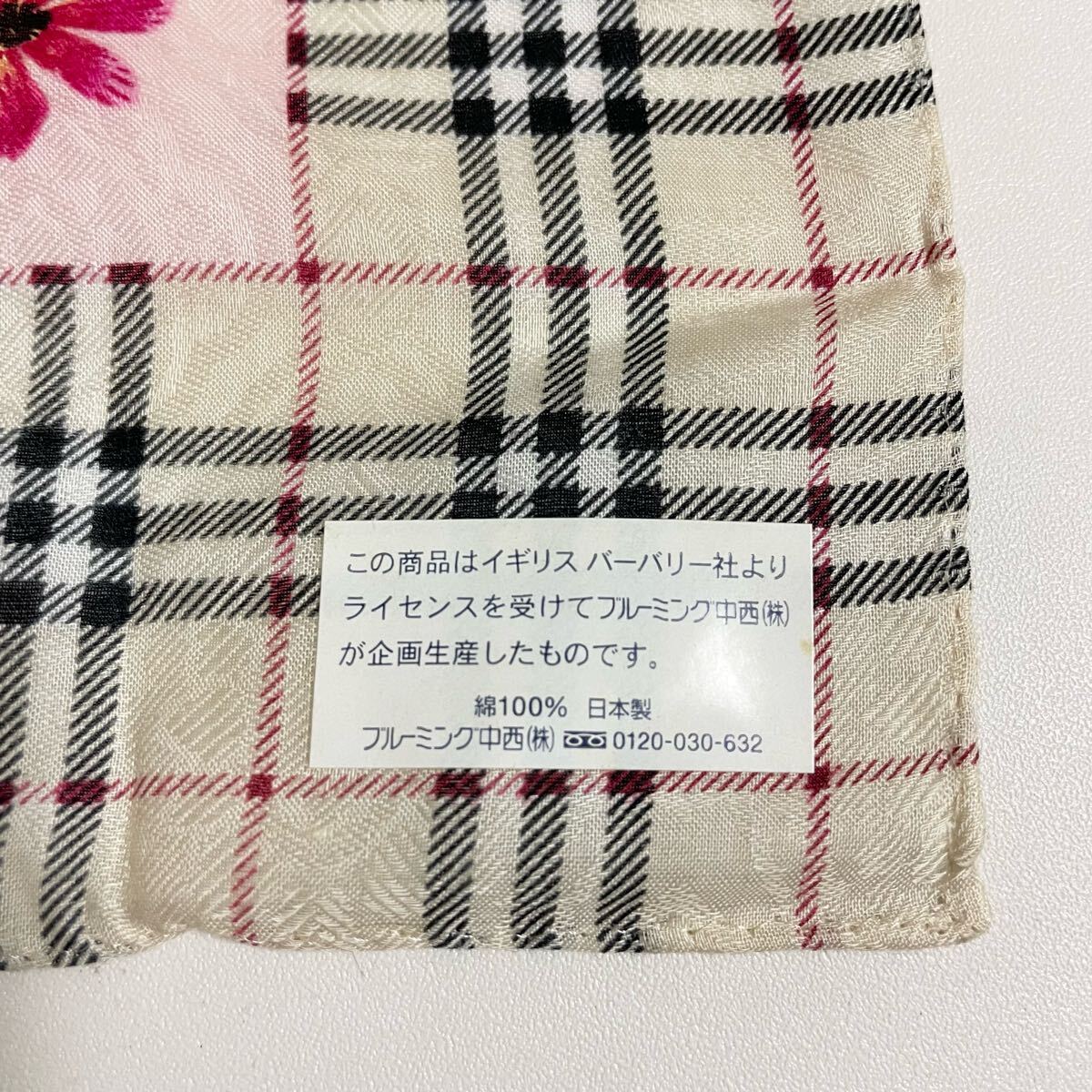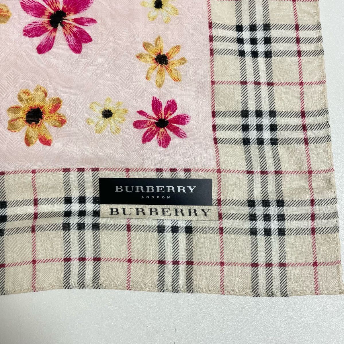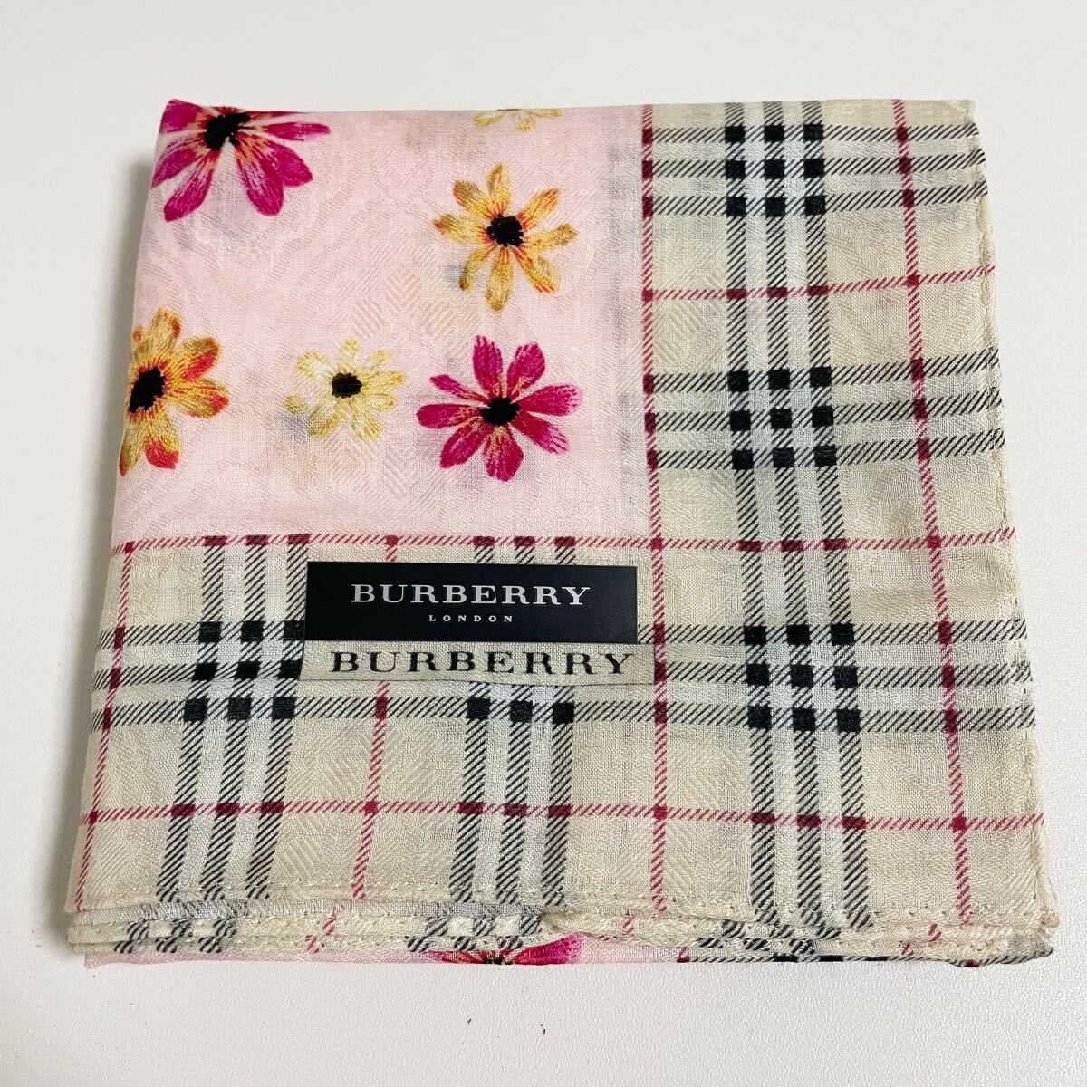 即決☆BURBERRY バーバリー ノバチェック 花柄 ハンカチ ピンク系×ベージュ系 新品 未使用 大判
