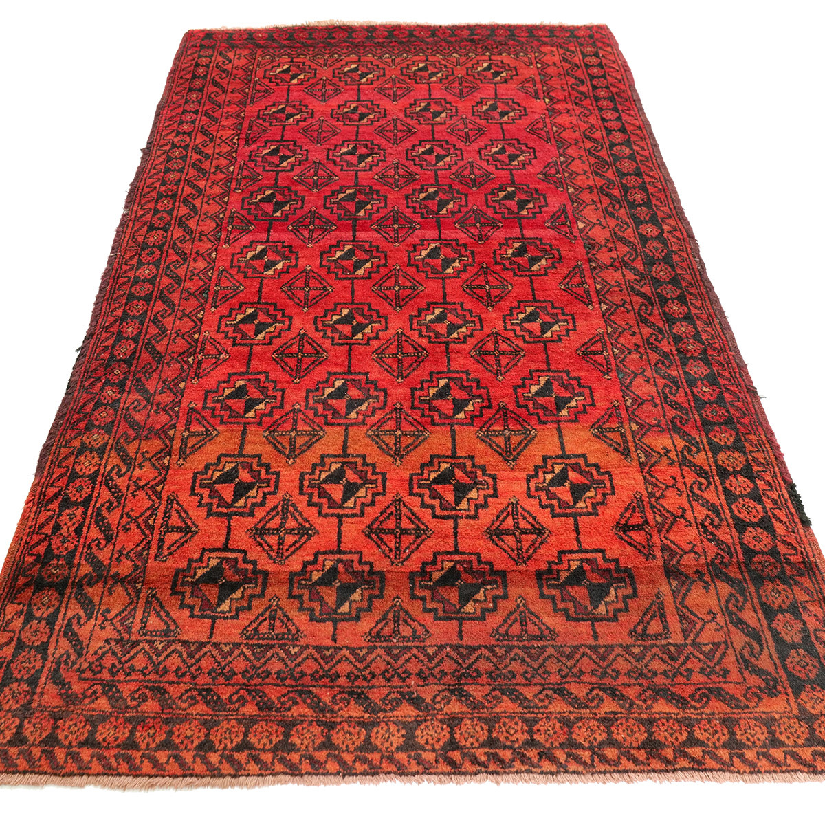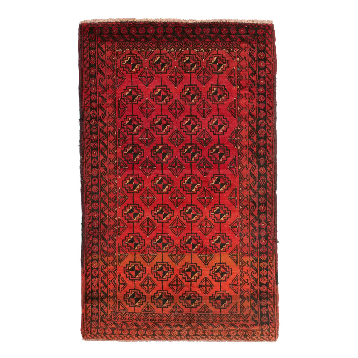 1950年にバルーチ族によってアフガニスタンで織り上げられたセミアンティーク絨毯です。1850×1150mmのサイズは、リビングやダイニングに適した大きさです。