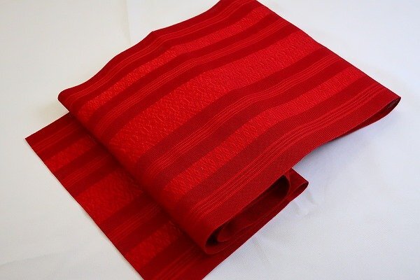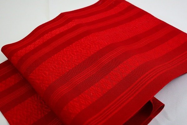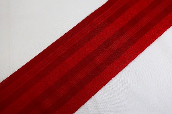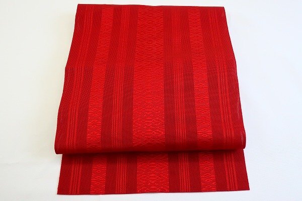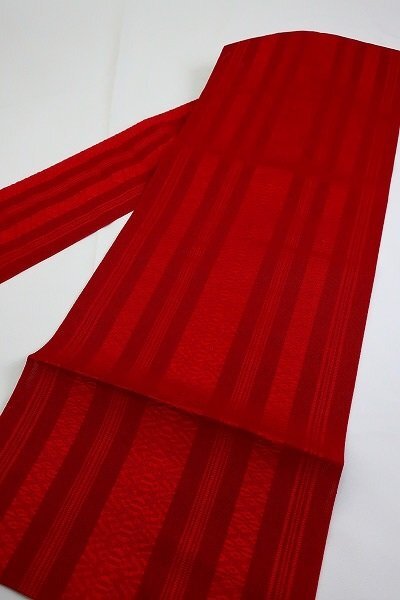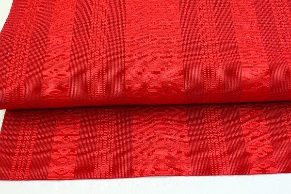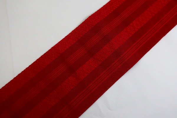 | 未使用品 名古屋帯 洗える 博多献上 夏帯 絽 臙脂 お洒落 普段着 ポリエステル 仕立て上がり 着物フィ 19260 |