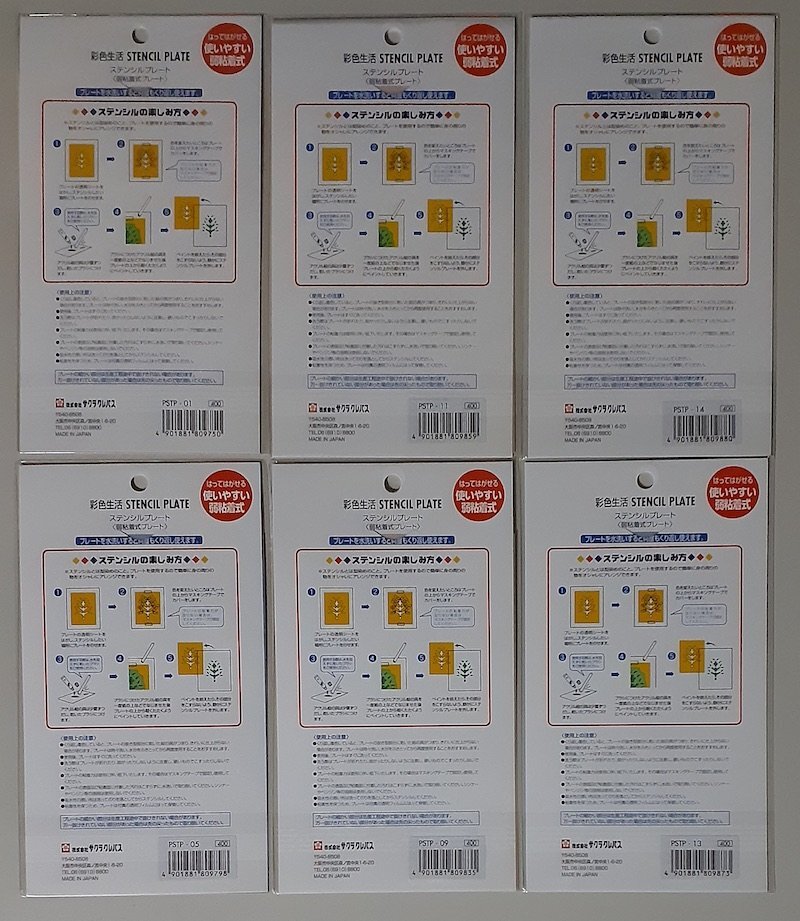 5802 未使用、未開封 彩色生活 STENCIL PLATE 6種まとめて はってはがせるステンシルプレート サクラクレパス
