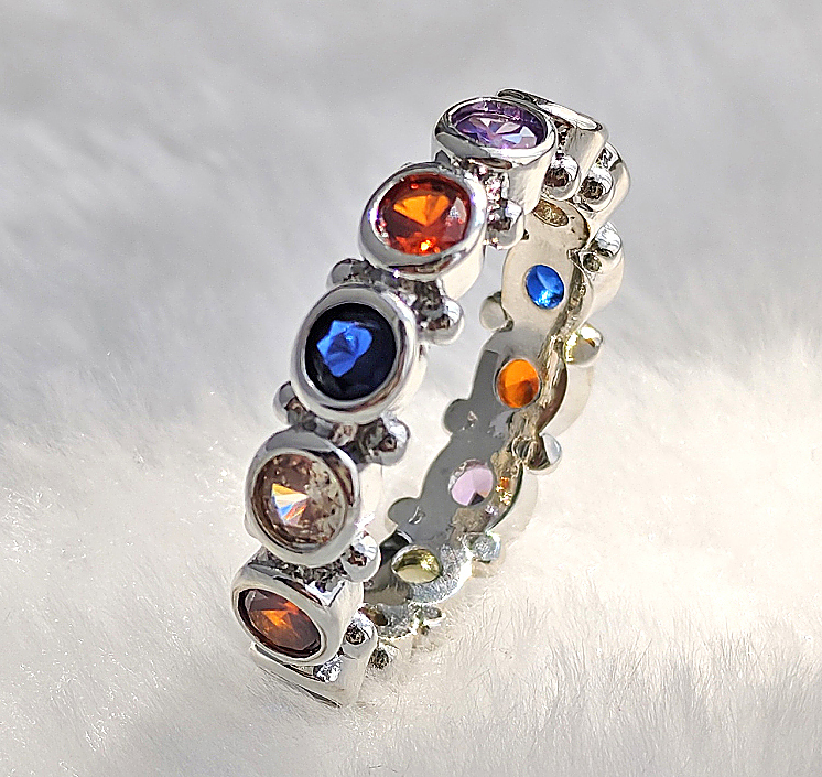 N250627◆Bigstone◆【多彩宝石のデザイン】キラキラ輝く*欧米ファッション*大存在感なリング*14号