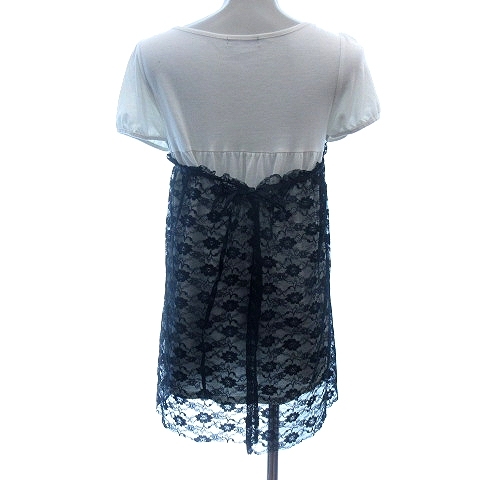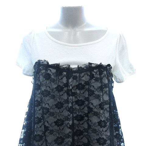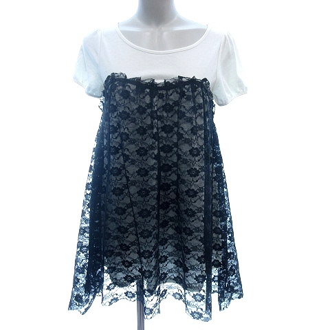 ハートアイランド Heart Island チュニック カットソー フェイクレイヤード レース 半袖 M 白 ホワイト /AU ●RY レディース