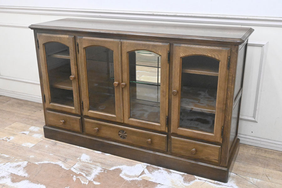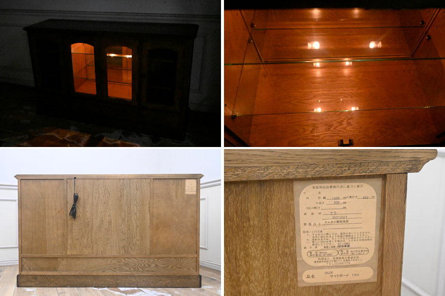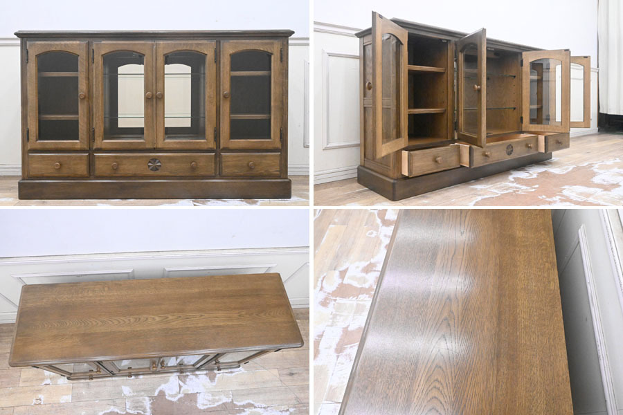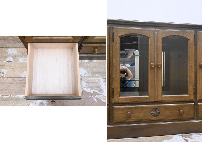 ----------------------------------------------------------------------------------------- ●送料や注意事項は必ずご確認下さい。落札後にトラブルになるケースが増えております。● ◆コンディションは写真・文章にて記載して有りますが、全てのキズの写真は掲載致しておりません。大きなダメージを除き見落とし、記載漏れが有る事はご了承下さい。 ◆当サイトにて出品する商品は多種多彩で、当方商品知識の無い物も多数ありますので落札後の質問やメンテナンス等にはお答えできません。 ◆入札された時点で、画像、文章をご理解していただいたものと判断させていただきます。不明な点は前もってQ&Aからお願い致します。入札後の質問やお電話等でのキャンセルは一切受け付け致しません。 ◆商品説明に「ノークレーム」と記載しているものに関しては、如何なる状況で届いても保証致しません。詳しくは注意事項の「商品到着後について」の最後に記載しておりますのでご確認下さい。 ---------------------------------------------------------------------------------------- 条件付き限定家財おまかせ便での発送となります。 運送事故補償の無い、限定条件での家財便発送となります。 こちらの方法で配送の商品は、運送事故による破損補償や動作不具合を含め、補償を一切出来かねますので、ご理解の上ご利用下さい。注意事項に記載の補償も適応外です。 北海道を代表する民芸家具、和光民芸家具からサイドボードUSED品の出品です。 北海道に数ある家具メーカーの中で唯一北海道優良道産推奨品(鶴のマーク)を授与された製造工場持つ和光社。素朴な樹のぬくもりと木目が伝える自然な感覚。神居民芸の家具は、和、洋どちらの暮らしにもあたたかく調和する、「北海道旭川」、伝統の民芸家具です。 一目で高級家具と分かるデザインは流石和光ですね。 全寸 幅150 奥45 高90.5cm 【コンディション】 中古品ですのでキズ、ダコン、ヨゴレ、塗装剥がれ、引出内汚れ等有りますが、中古品としては美品と言える奇麗なお品です。 | ||