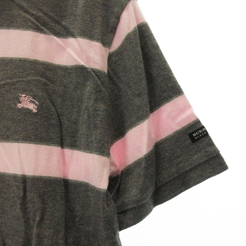 バーバリーブラックレーベル BURBERRY BLACK LABEL ボーダー ポロシャツ 半袖 2 グレー ピンク 250606E メンズ