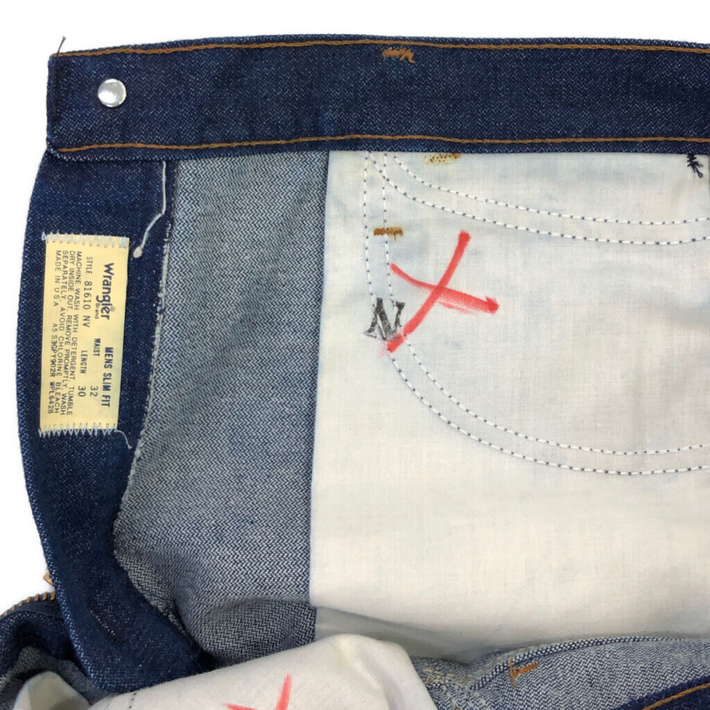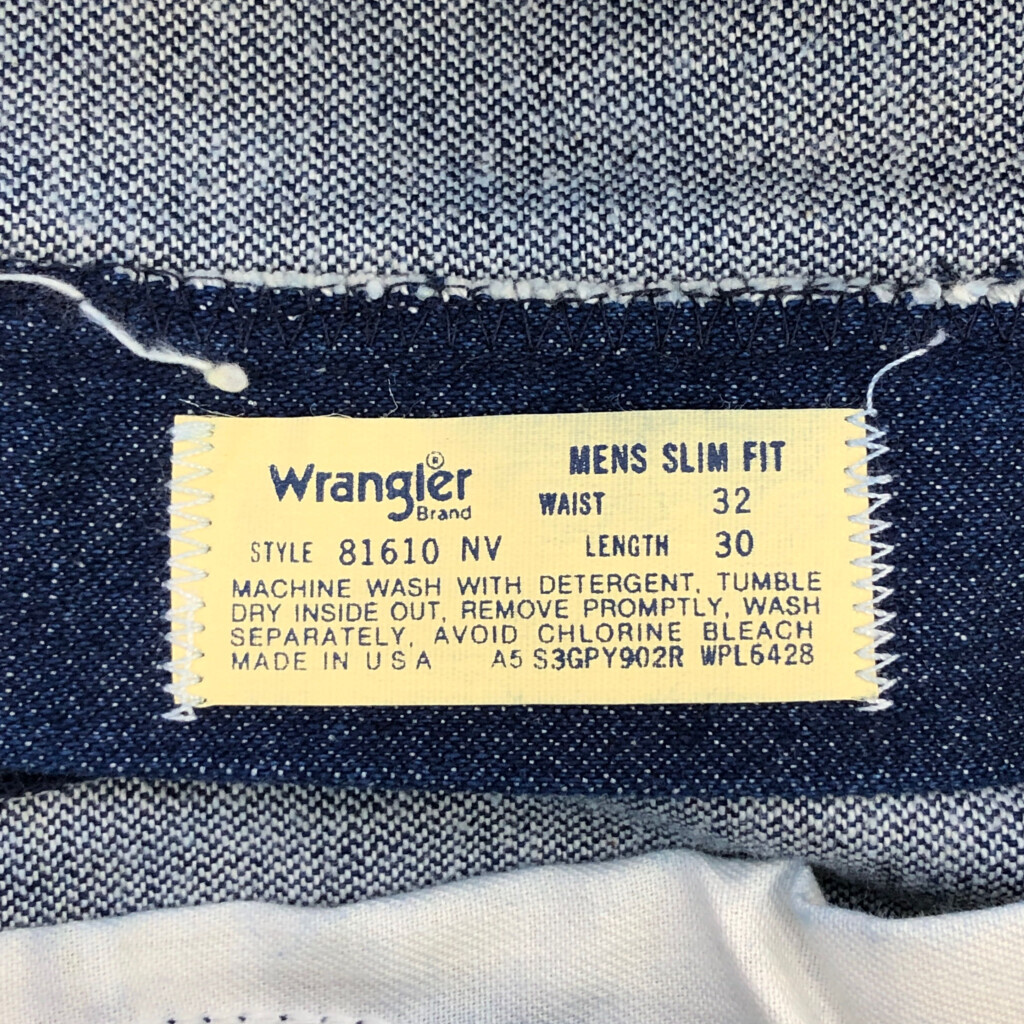 [商品管理番号] U2643 [ブランド] Wrangler/ラングラー [サイズ] W32 L30 [実寸サイズ] ウエスト:約76cm 股上:約28cm 股下:約74cm わたり幅:約29cm 裾幅:約23cm [主な素材] 表地 : コットン [色] ブルー [仕様] 生産国 : USA製 70年代 ヴィンテージ デッドストック 81610NV [状態] 特記事項:文字記入 | |||