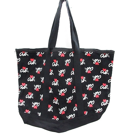 アニエスベー agnes b. トートバッグ ハンドバッグ ロゴ プリント 総柄 黒 ブラック /RT ●RY レディース