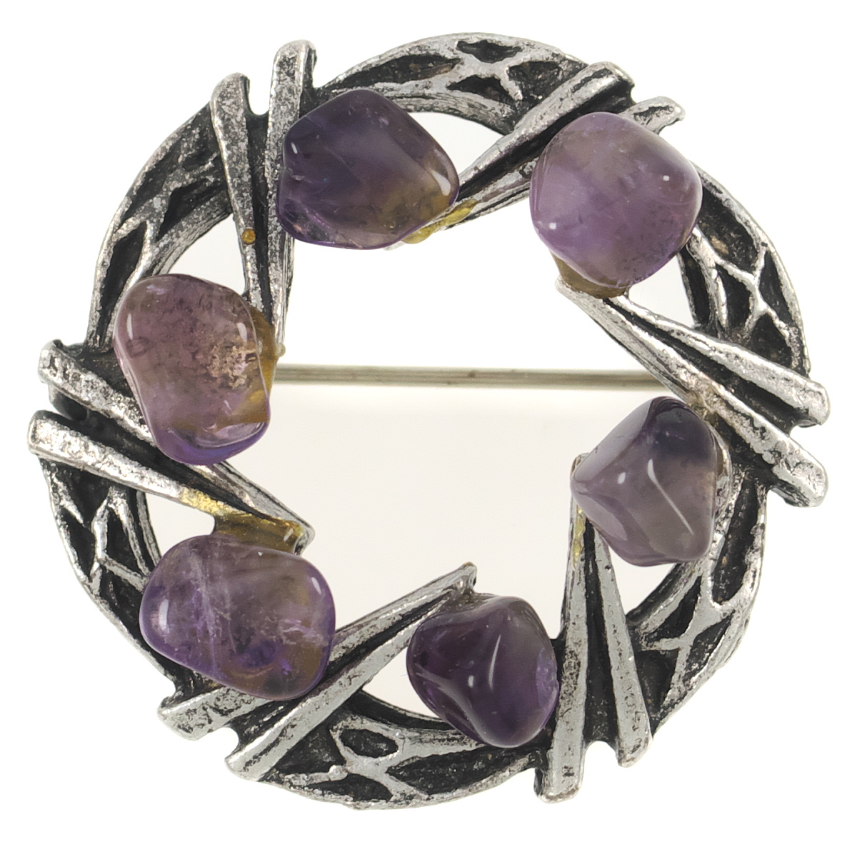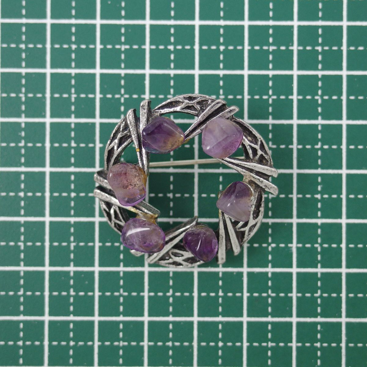 UK3880◆ リース パープル系ストーン アメジスト色 色石 ◆ ヴィンテージブローチ ◆ イギリス ケルト 英国 ◆