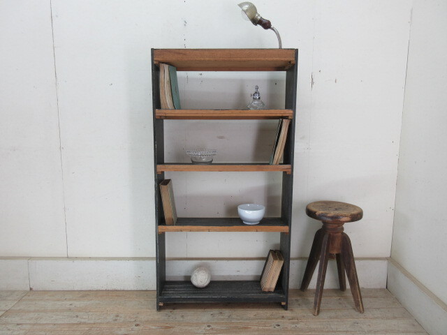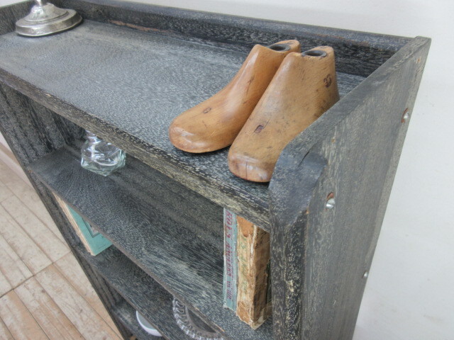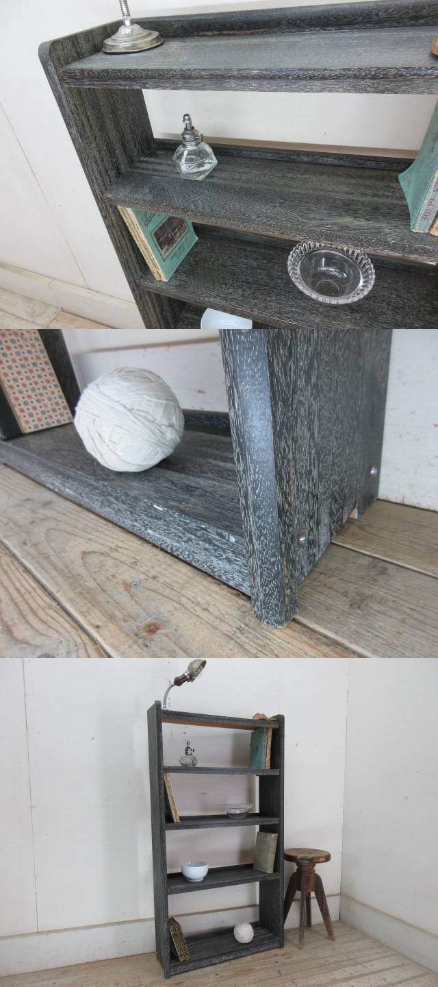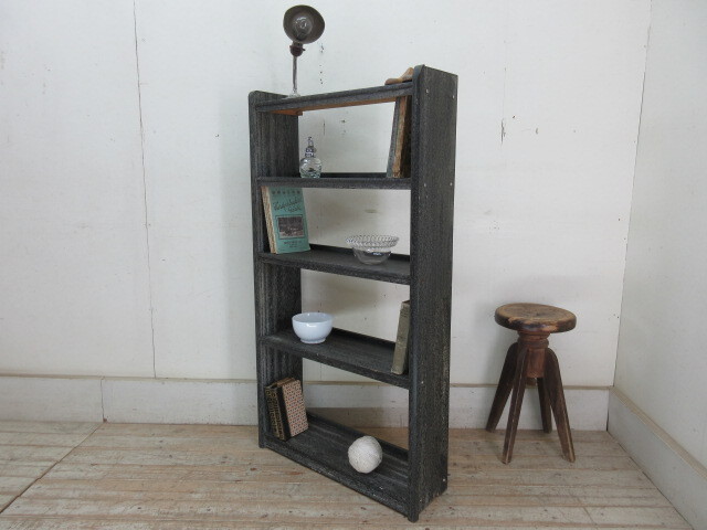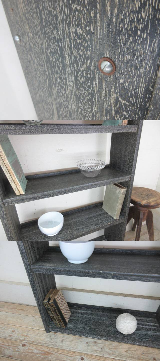 古い木味の4段本棚G109  アンティーク家具収納棚陳列棚ブックシェルフ本箱書棚書類入れ店舗什器カフェ什器無垢材古家具