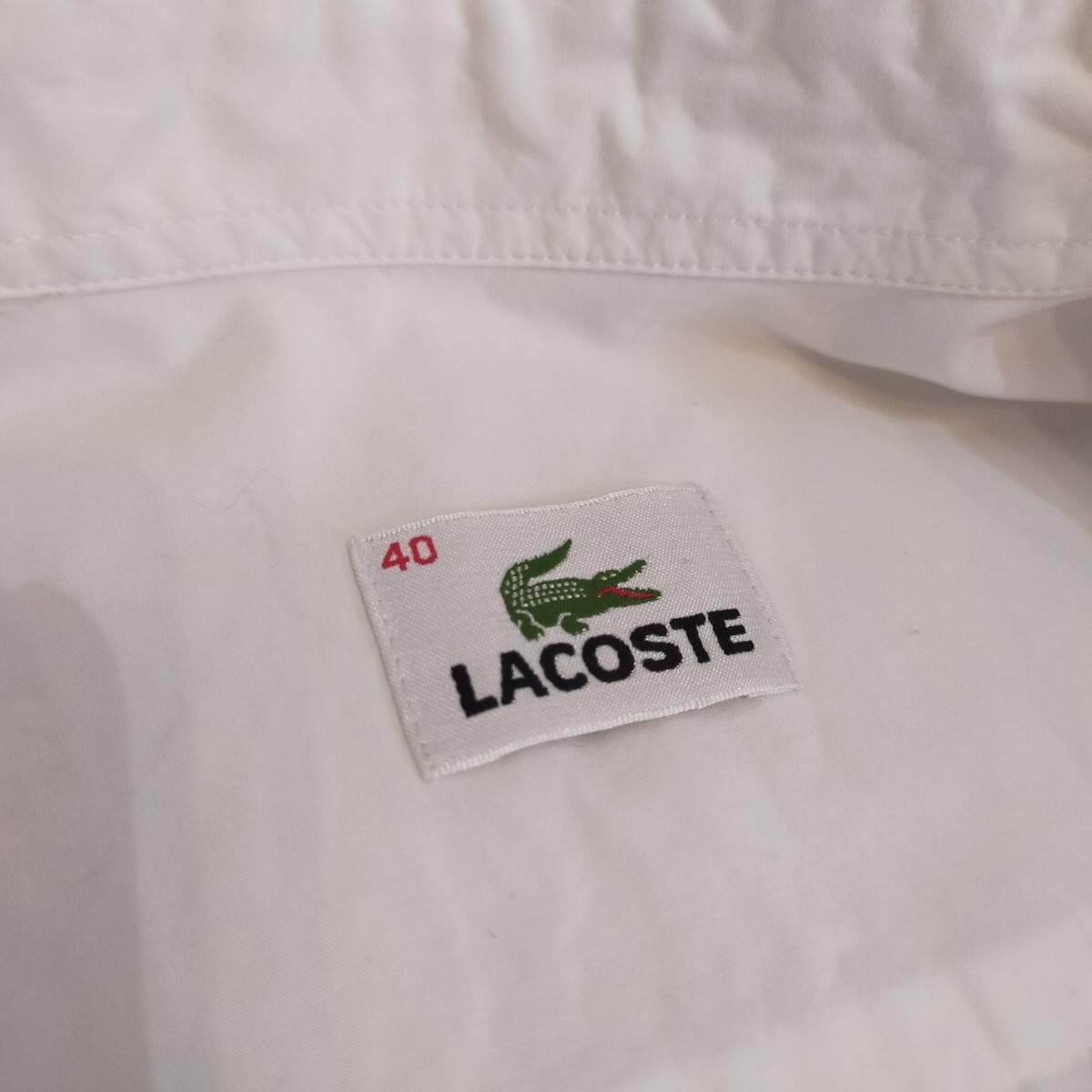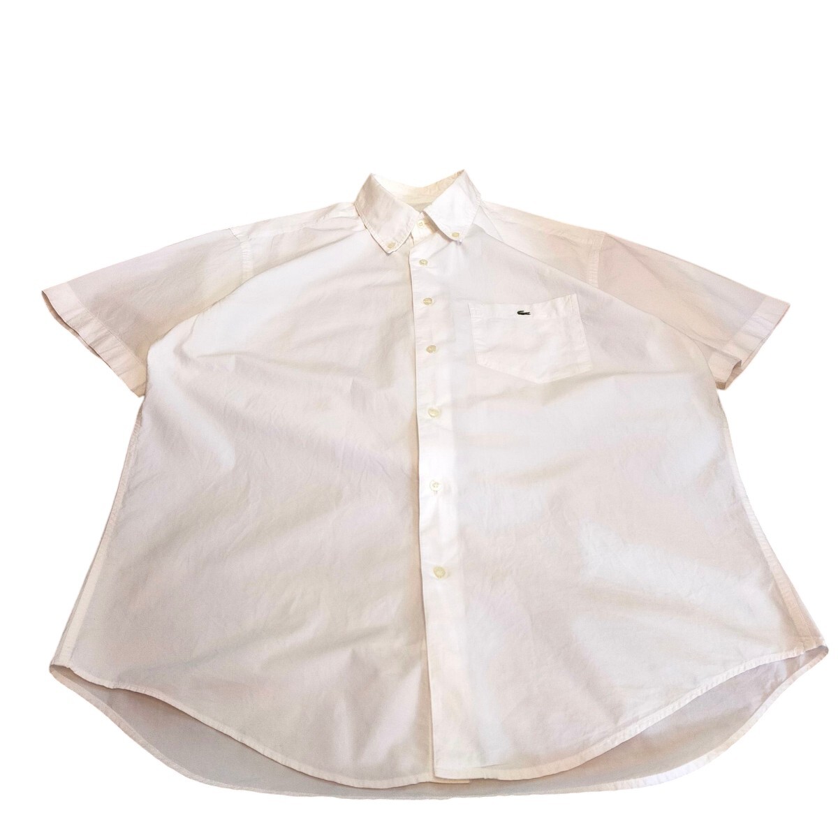 カラーはホワイト、ボタンダウン、胸ポケット部分に小さめなワニロゴがあります。