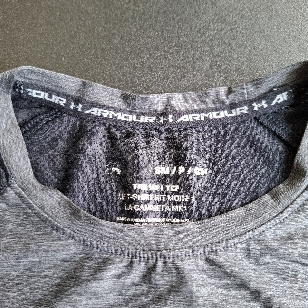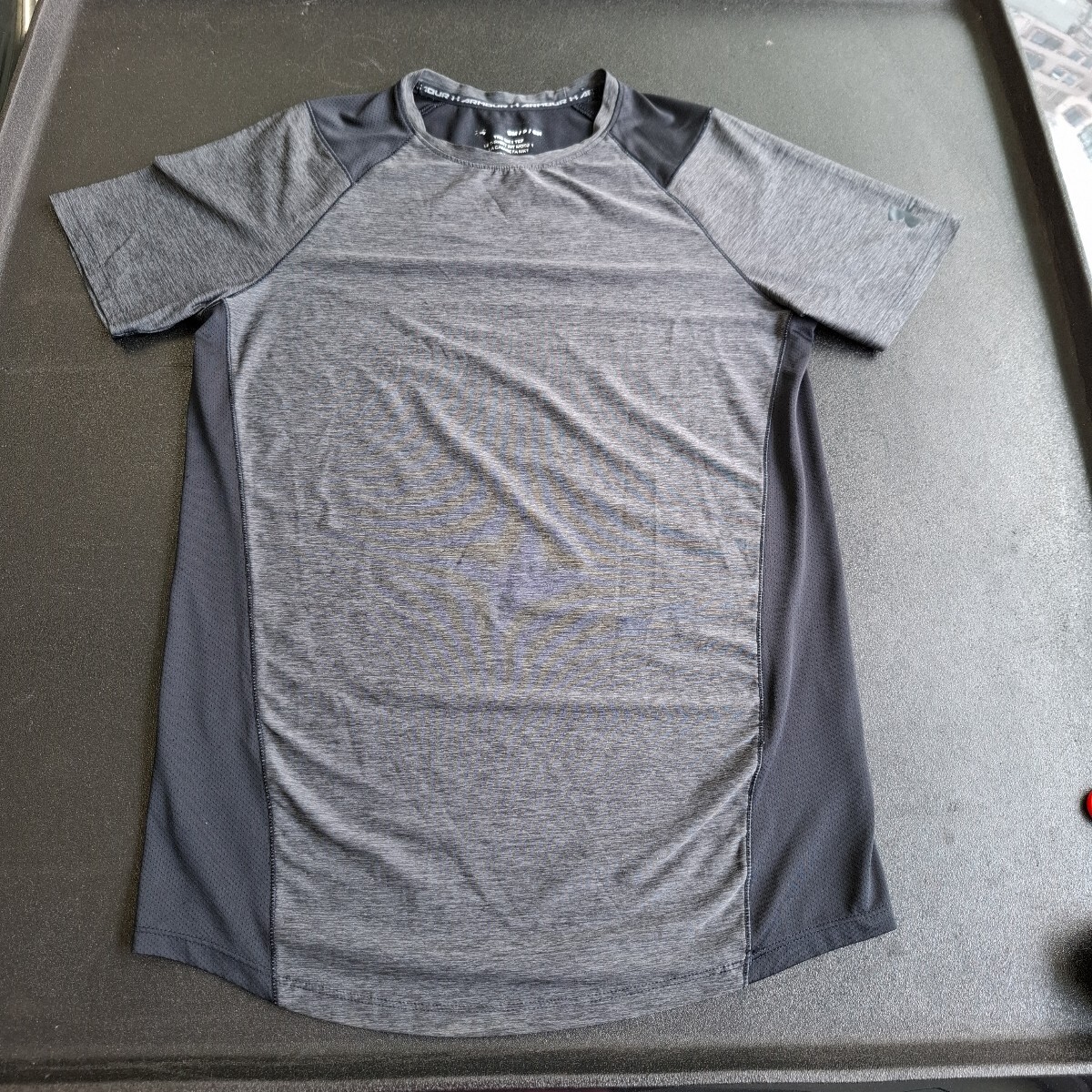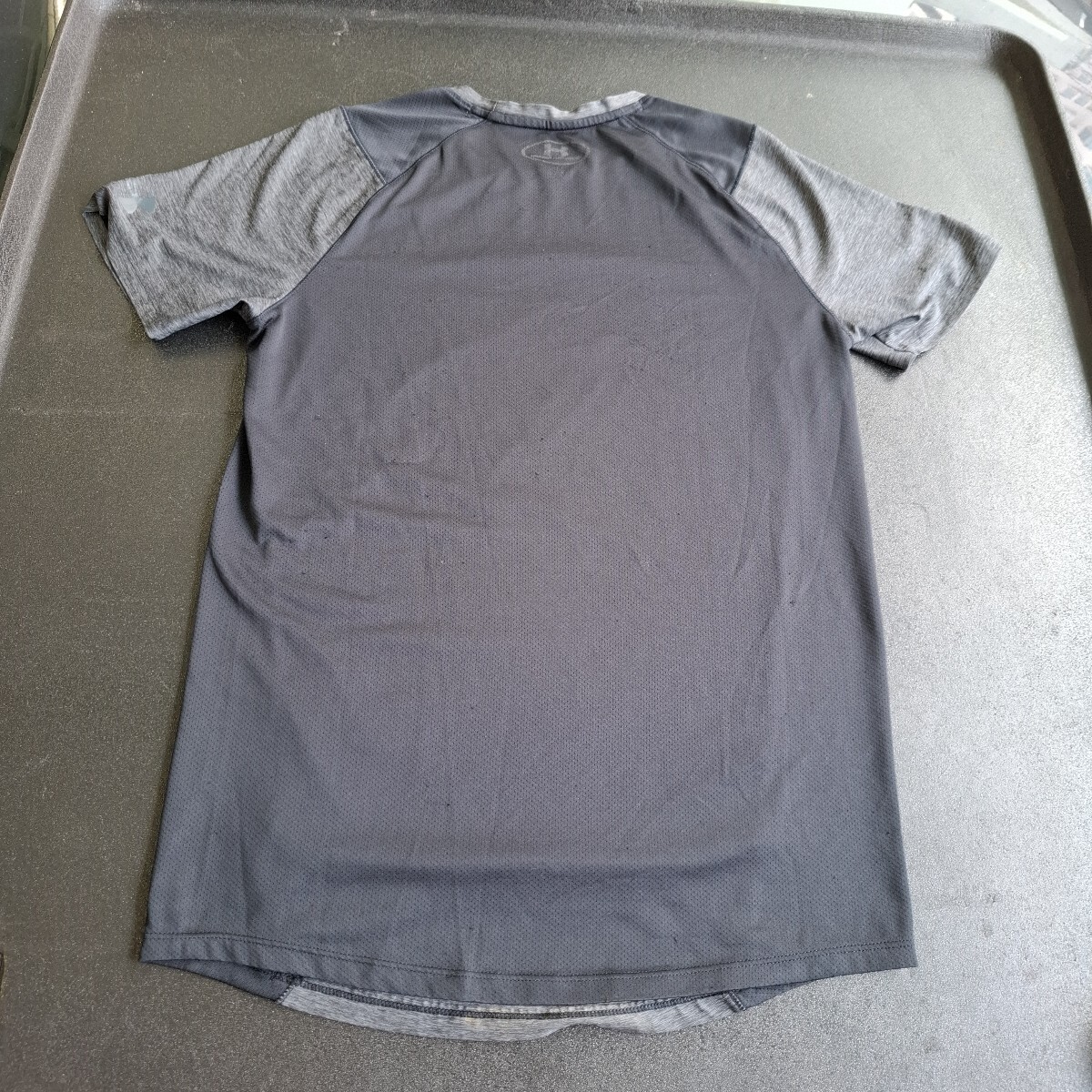 ブランド 中古アンダーアーマー 切り替え式黒×グレー 背中部分キズ有ります。 半袖Tシャツ