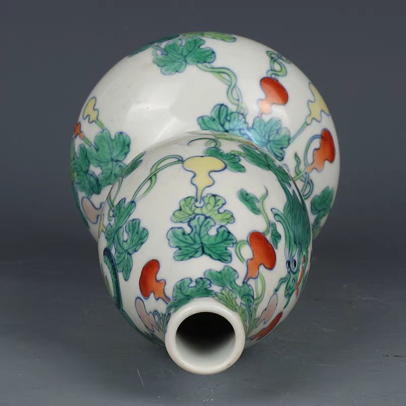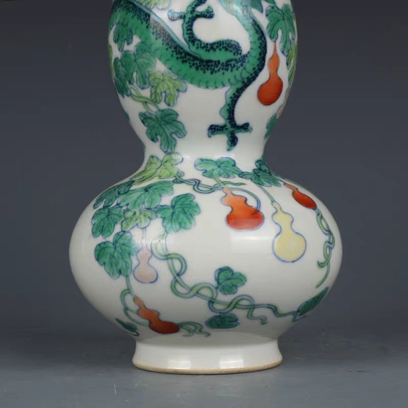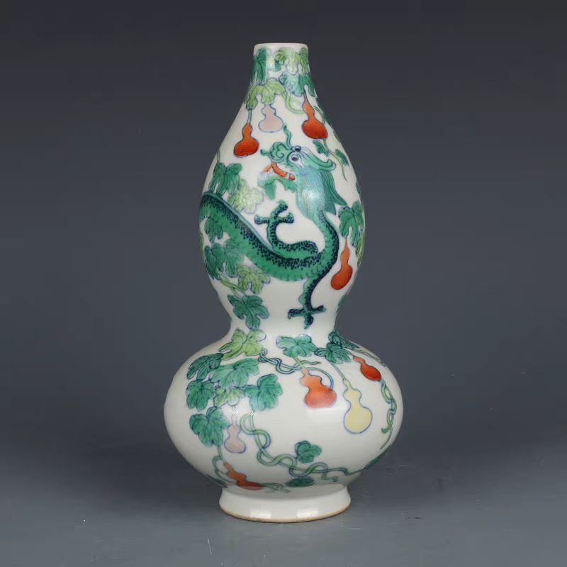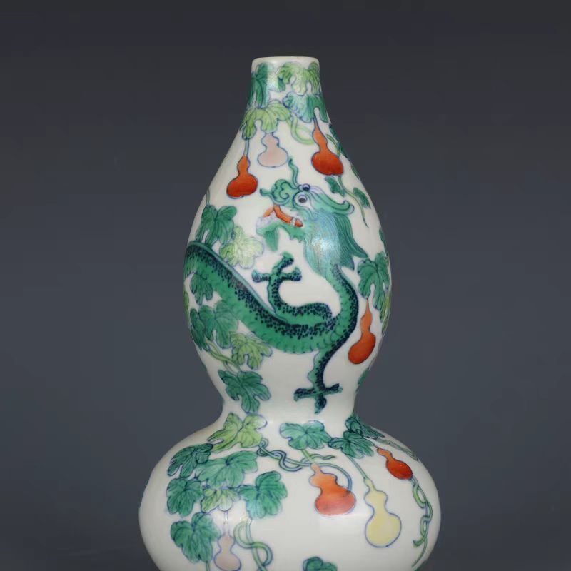清時代 雍正年製款 古陶磁器 斗彩 纏枝 龍紋 葫芦瓶 賞瓶 花瓶 置物 古擺件 時代物 古董品 骨董 旧家蔵出 唐物 中国古玩 古美術品