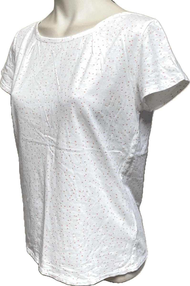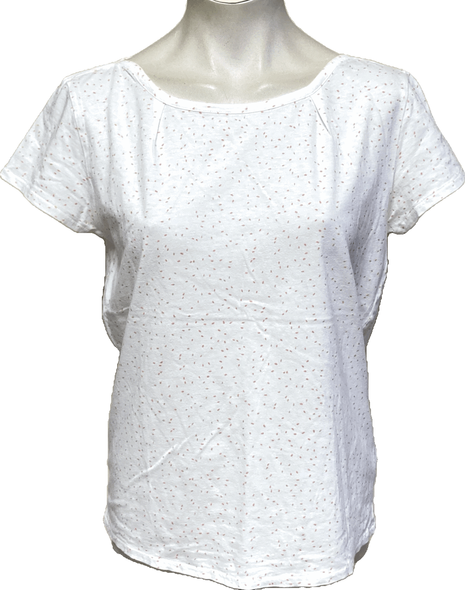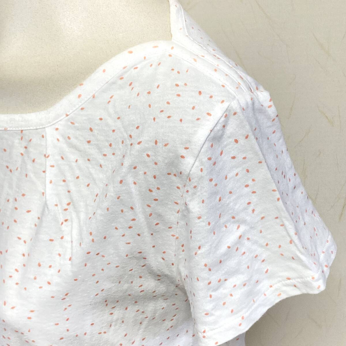 ■前襟ぐりにタック入りの緩やかなスクエアネック、柔らかくて肌触りの良いピュアコットンのTシャツです。
