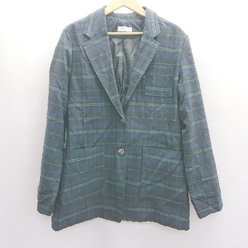 ◇ ⊂ PAGEBOY ページボーイ チェック柄 長袖 ジャケット サイズF ネイビー グリーン レディース E