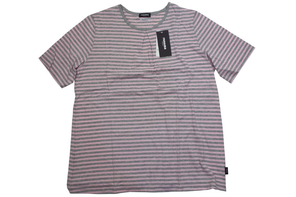 ●レノマrenoma PARISの春夏物薄手パジャマ(M)、新品です。サラッとした薄手天竺です。 プルオーバー、半袖、ロングパンツ。素材は綿100%。色はピンク+グレーです。 サイズはMでバスト79-87㎝です。