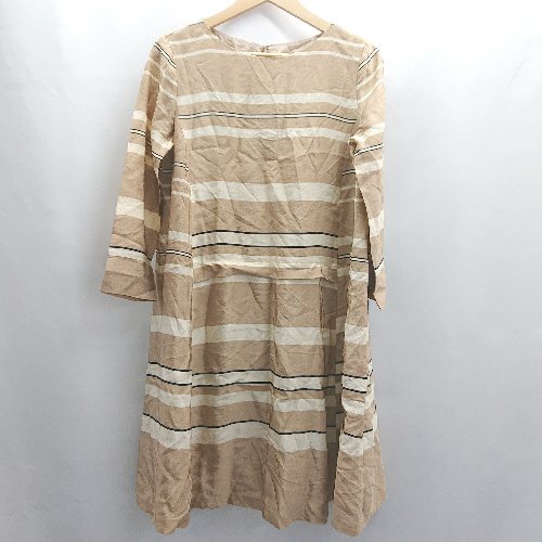 ◇ ⊂ UNTITLED アンタイトル ボーダー柄 長袖 膝丈 ワンピース サイズ2 ベージュ レディース E