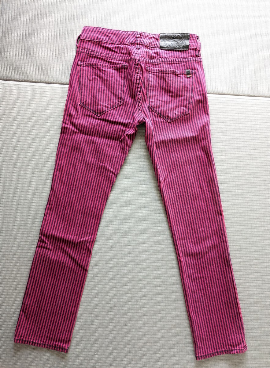 ⇒平置きで、ウエスト32cm、股上20cm、股下68cm、裾幅15cm