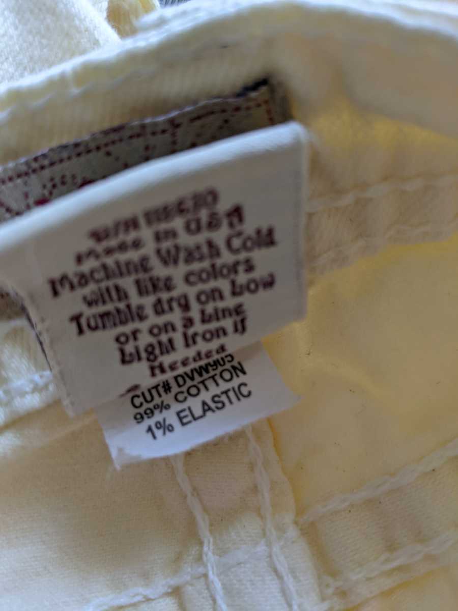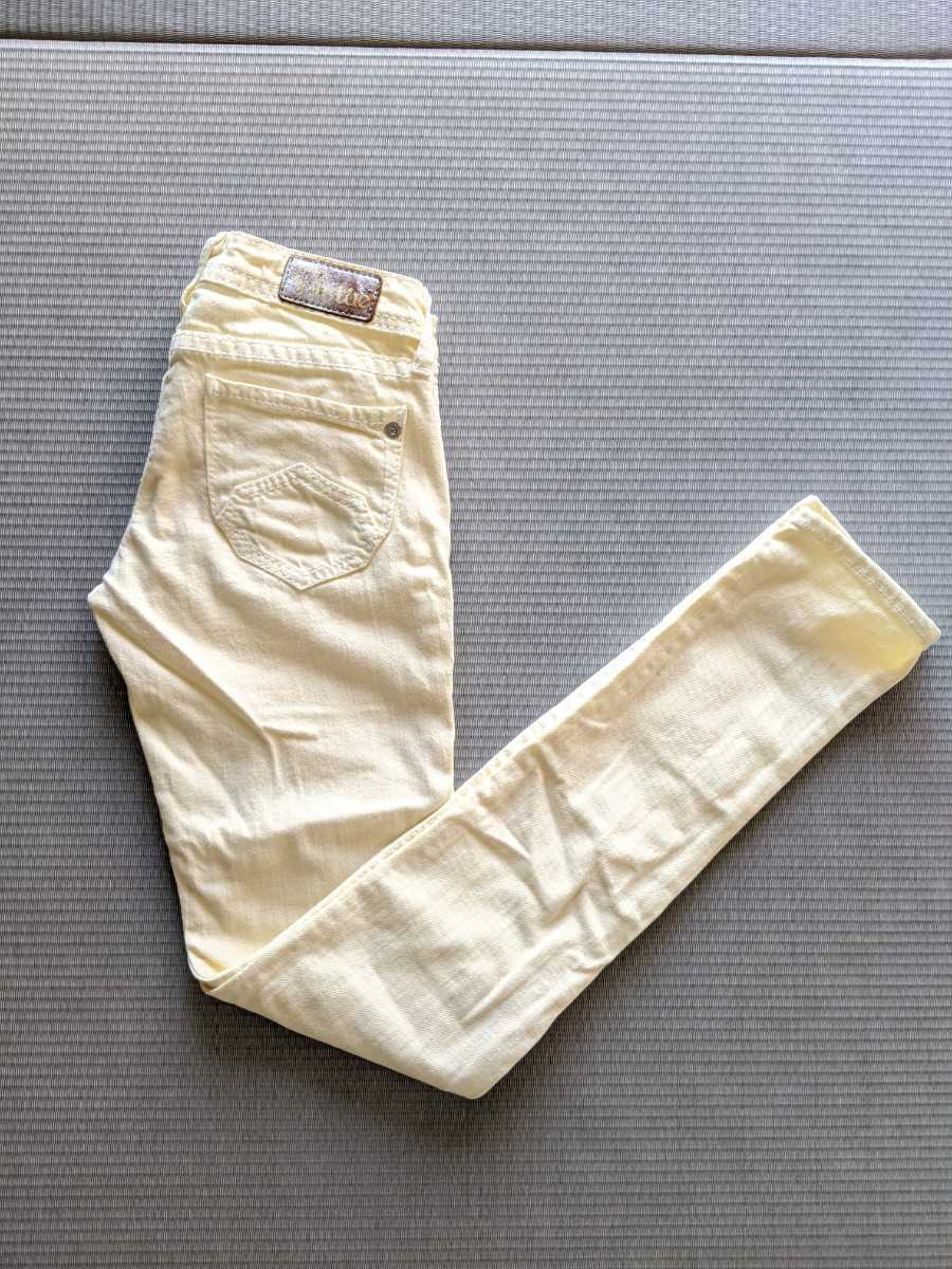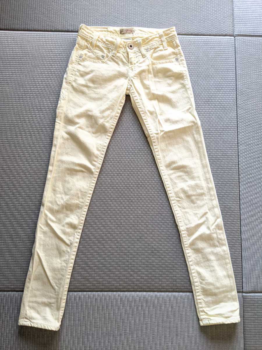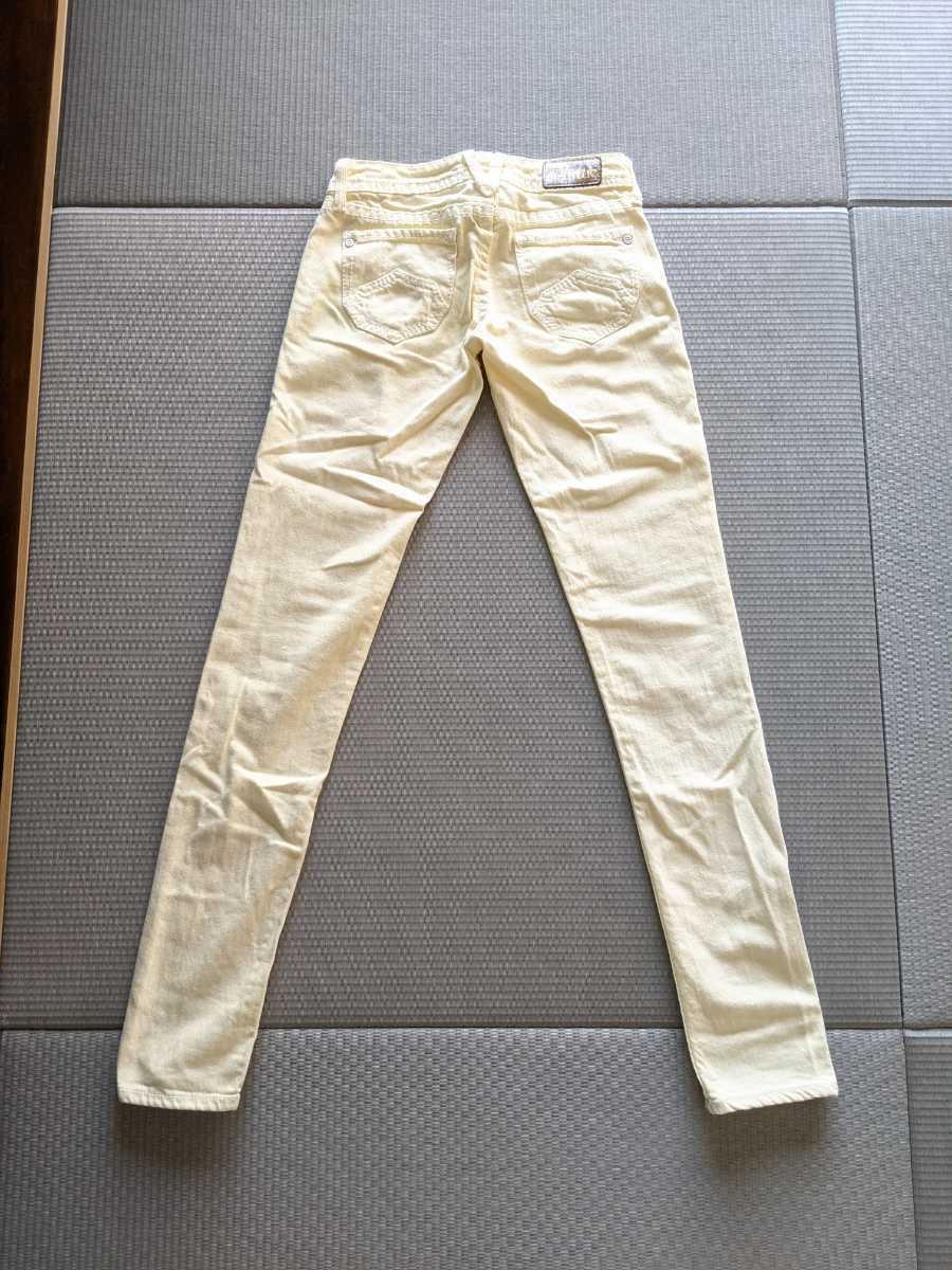 ⇒平置きで、ウエスト32.5cm、股上17cm、股下81cm、裾幅13.5cm