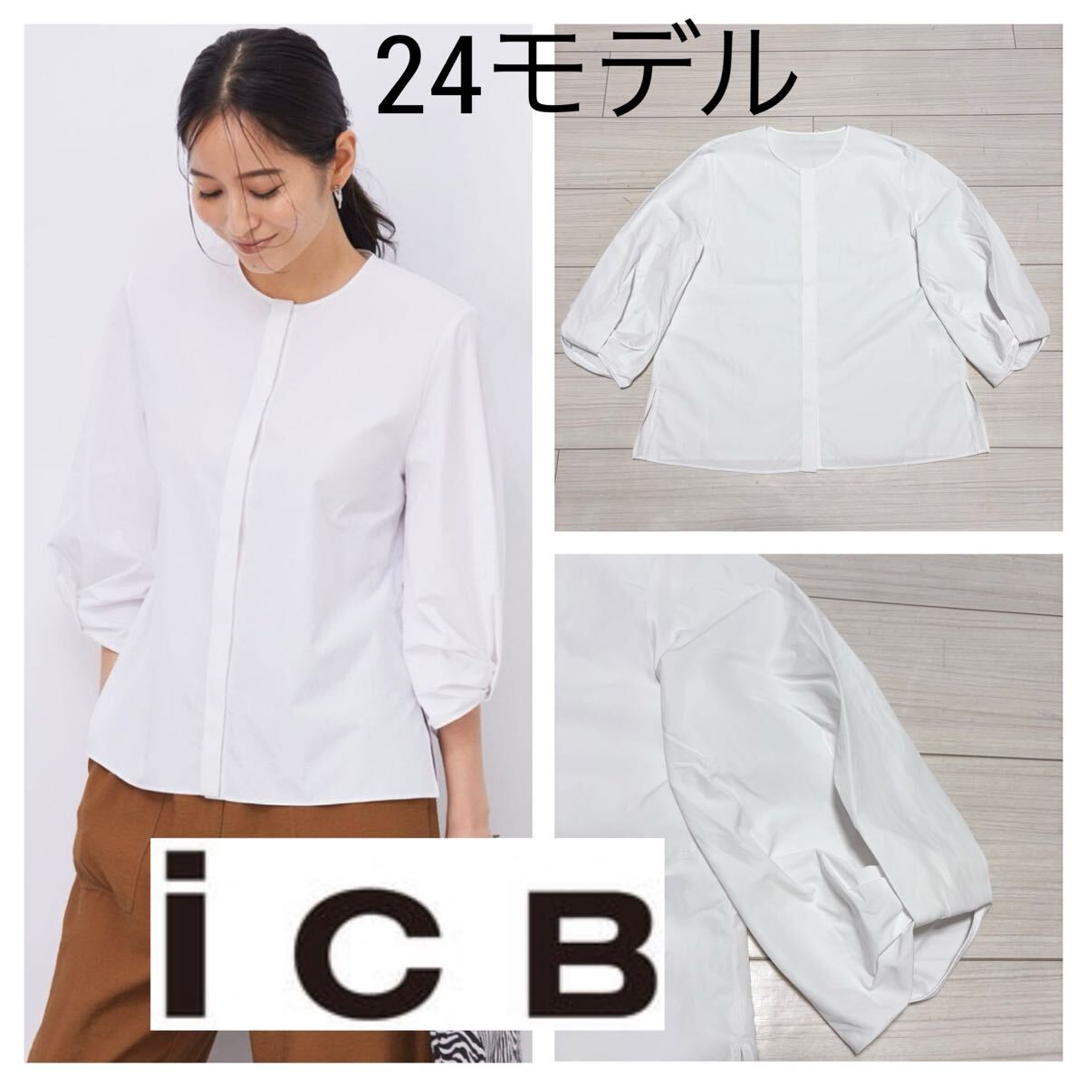 こちらは、24aw 良品■ICB■コットンナイロン タイプライター デザイン ブラウス 4 M 白 オフホワイト ボリュームスリーブ 洗える 定価24,970円