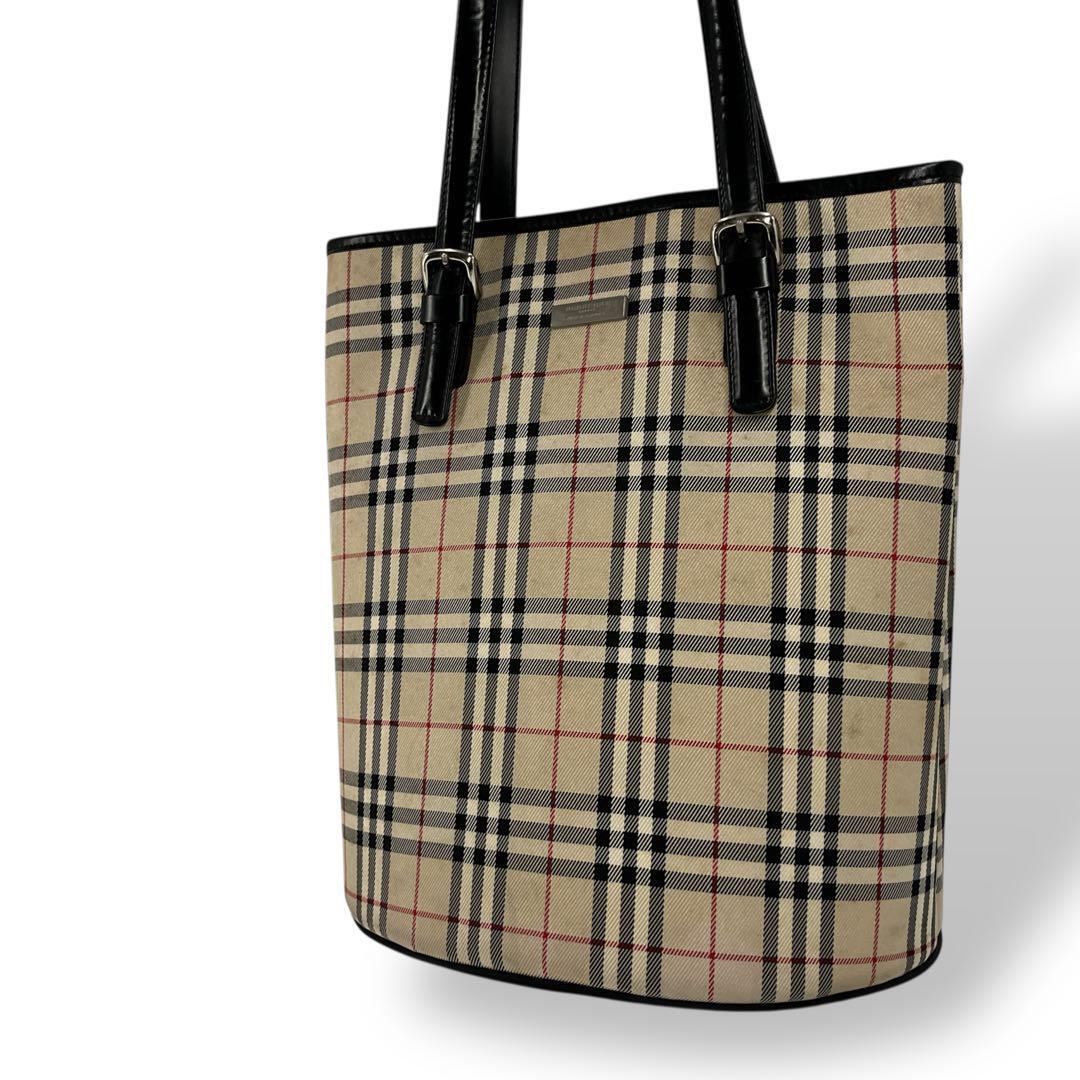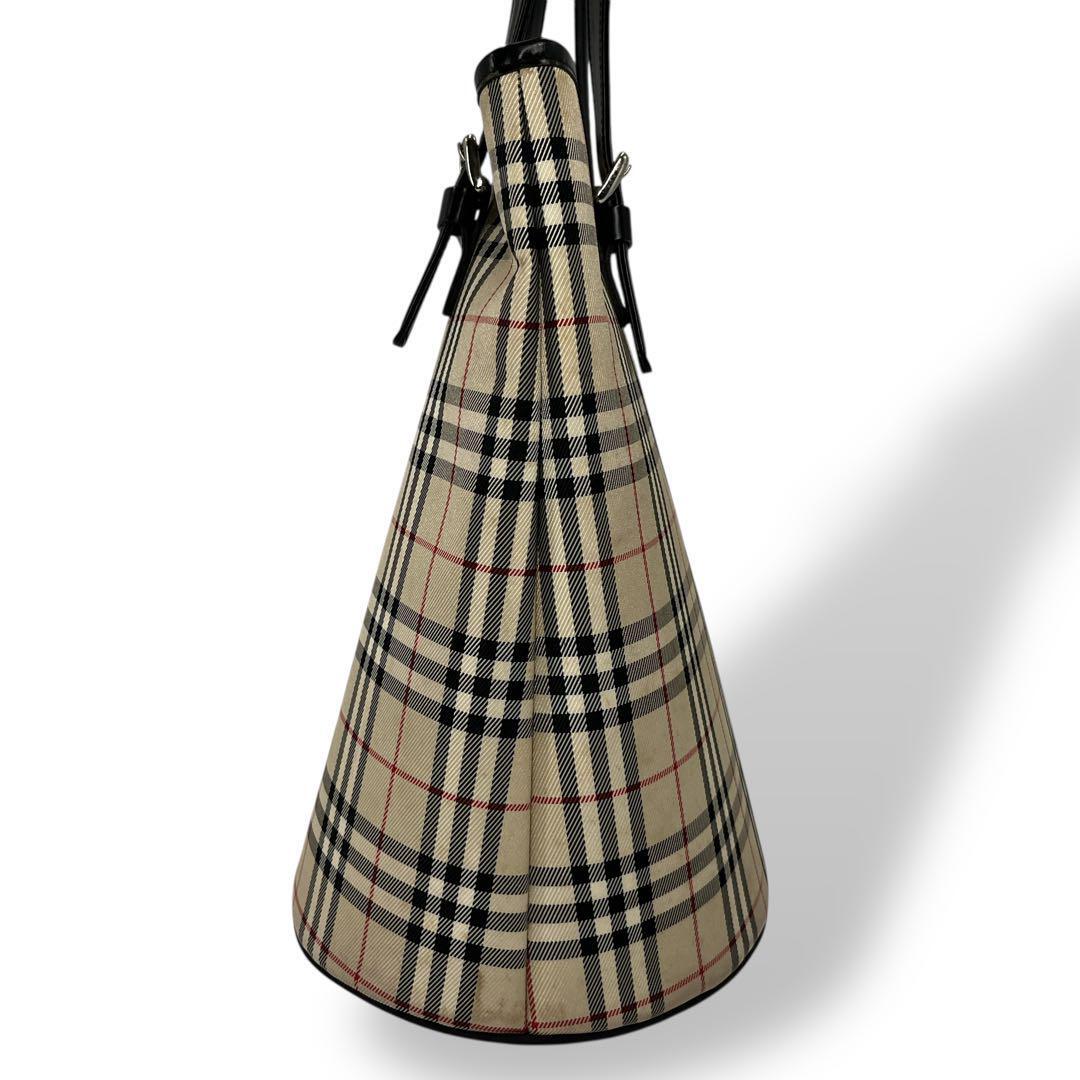 BURBERRY LONDON BLUE LABEL 肩掛け可 ハンドバッグ ロゴプレート シルバー金具 黒 ブラック レザー