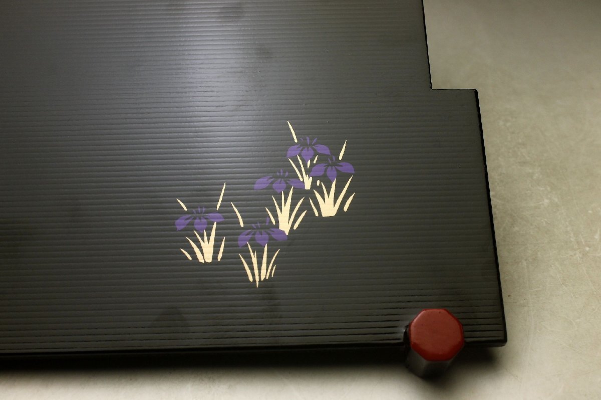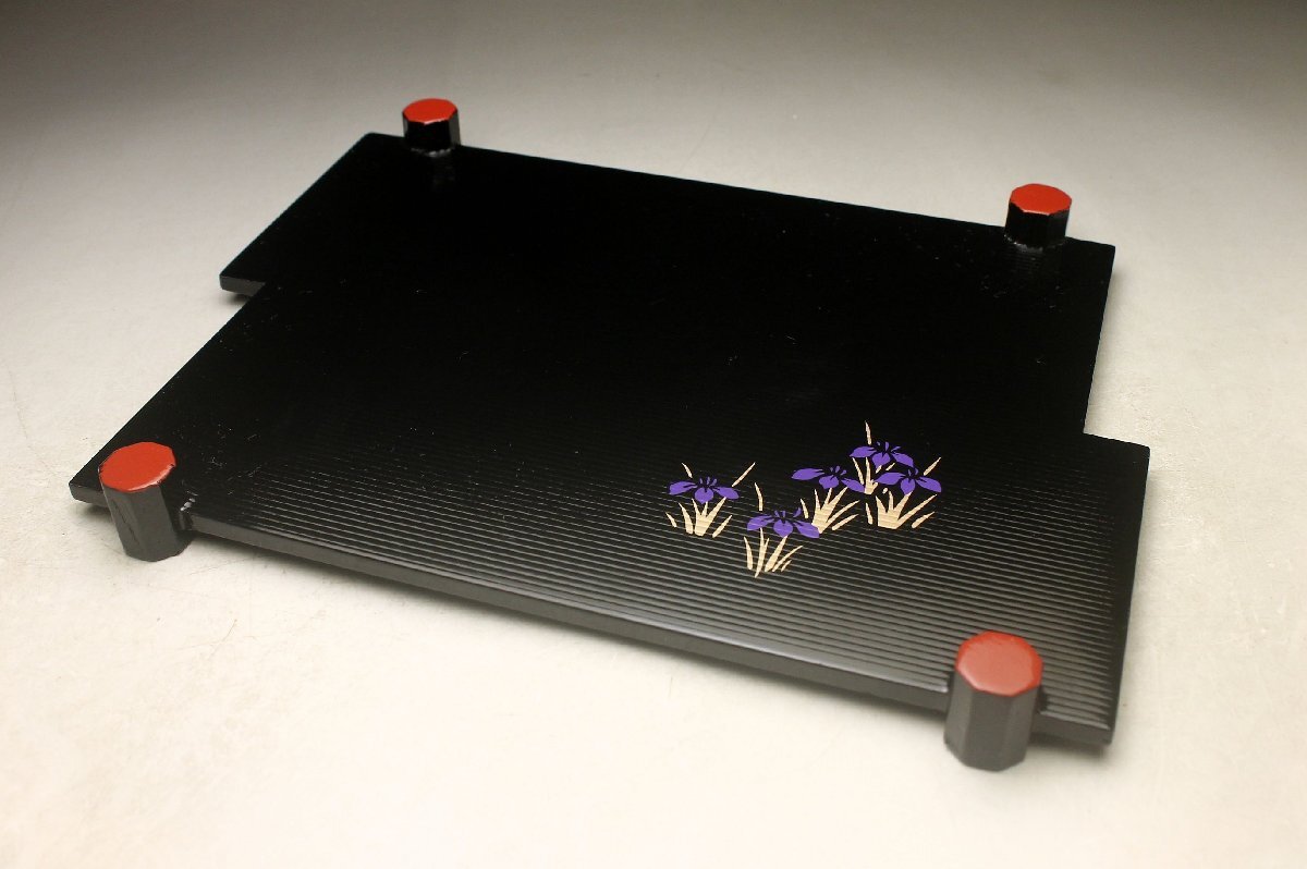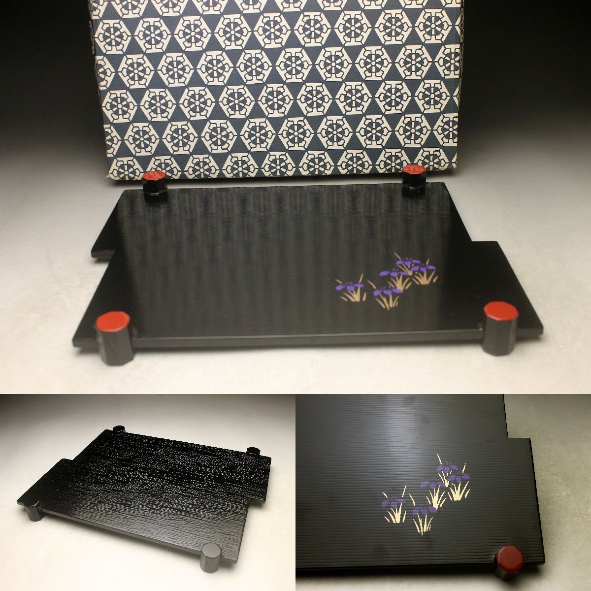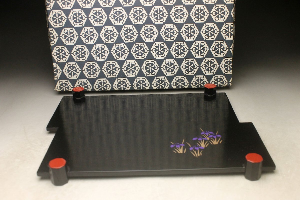 【余韻】 天然木製 漆器 蘭文 橋形 盆★化粧箱 無傷美品<同梱可>