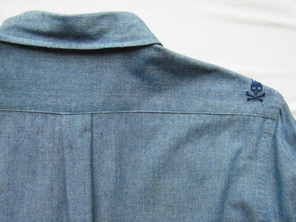 サイコバニーのインディゴシャンブレー素材のボタンダウンシャツになります。USEDで着用感は御座いますが、特に目立ったダメージ等は御座いません。