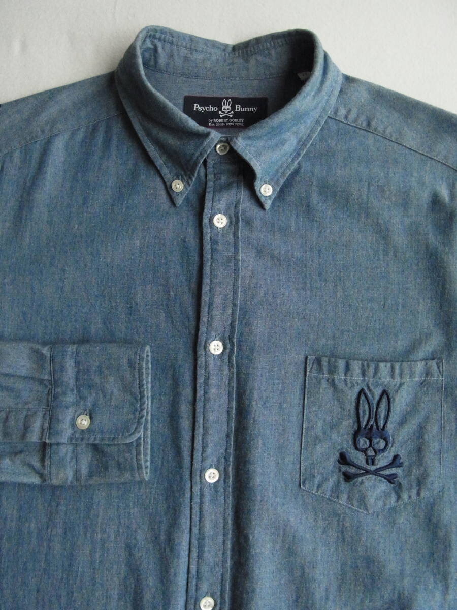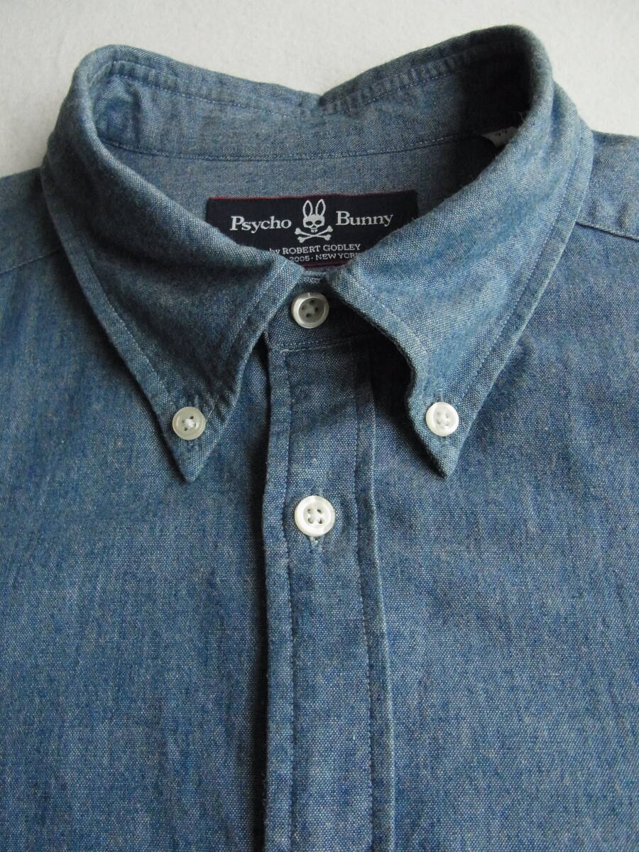 Psycho Bunny  サイコ・バニー インディゴシャンブレー素材 ボタンダウンシャツ サイズ 44  日本製