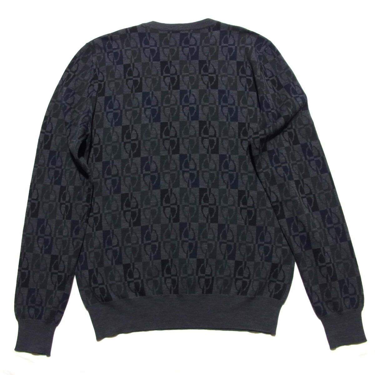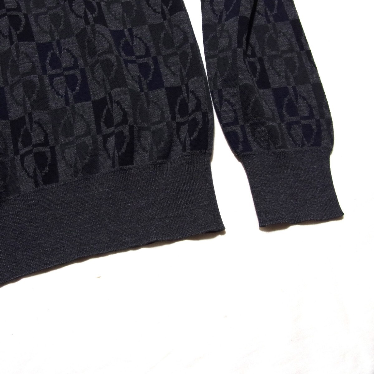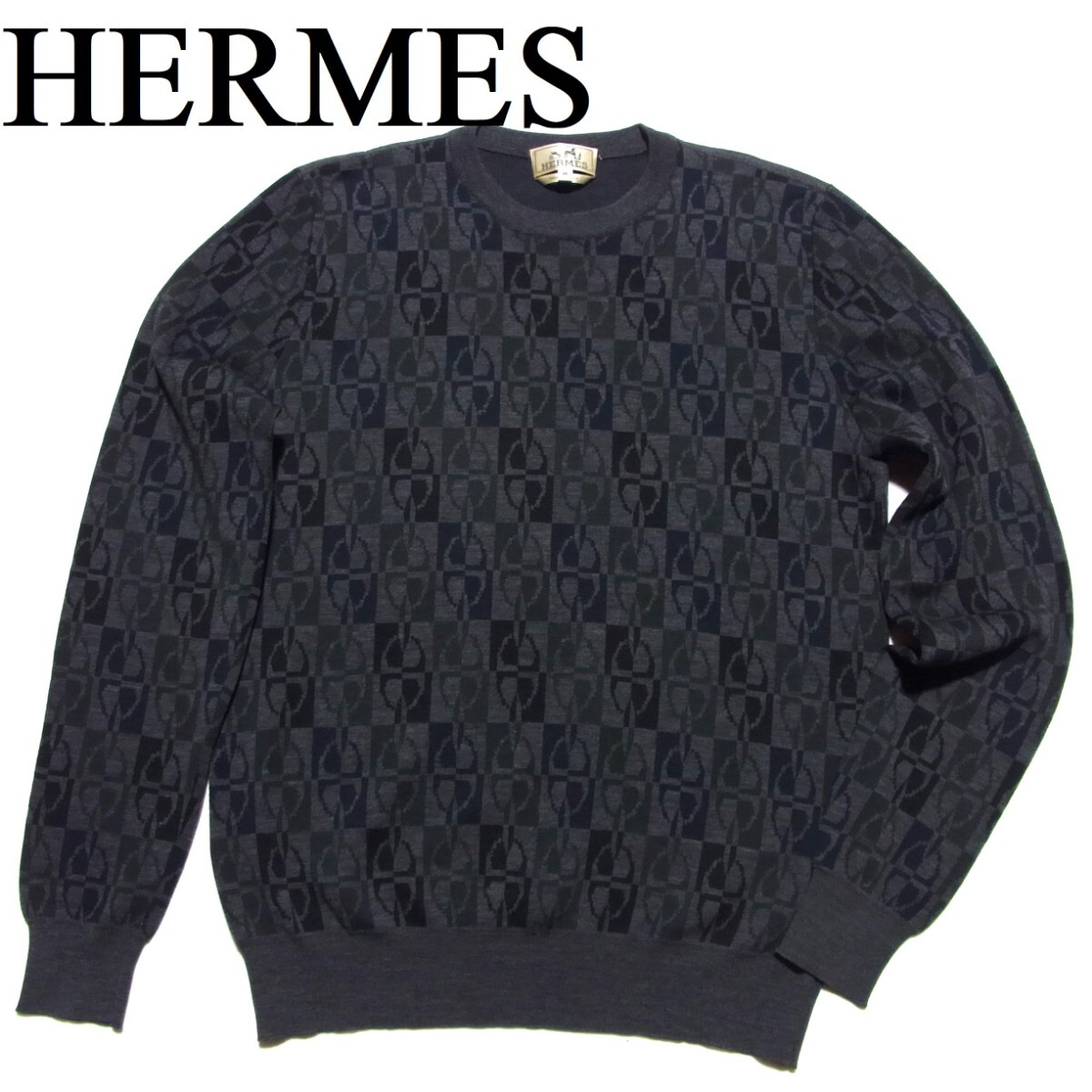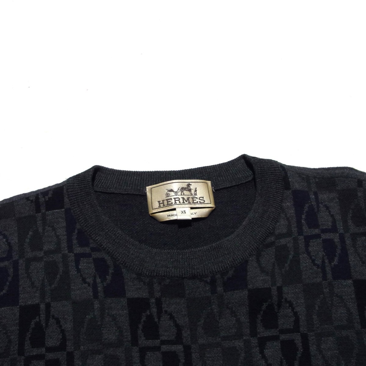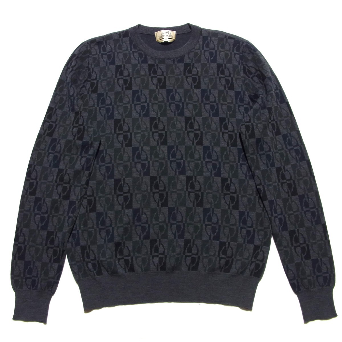 ★商品名…HERMES エルメス シェーヌダンクル 総柄 クルーネック ニット セーター XS グレー メンズ