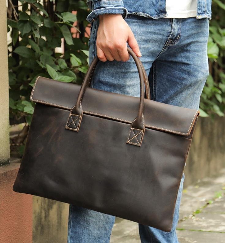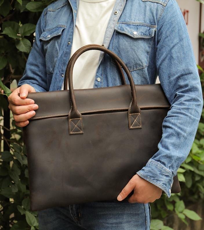 美品☆高級本革 厚手牛革 メンズバッグ ブリーフケース ビジネスバッグ 手作り トートバッグ 14PC対応 A4書類 通勤 出張 鞄