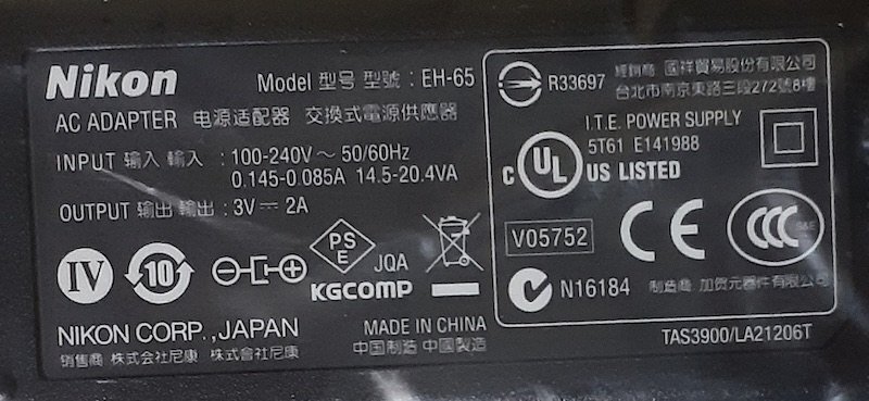 5893 未使用、未開封 Nikon ACアダプター EH-65A COOLPIX専用ACアダプター 電源アダプター
