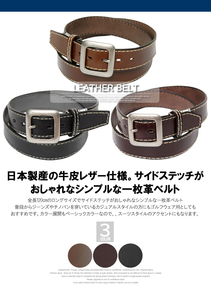 | 商品名 | 【新品】 F チョコ ベルト メンズ 大きいサイズ 本革 牛革 カジュアル シンプル サイドステッチ レザーベルト 日本製 国産 |