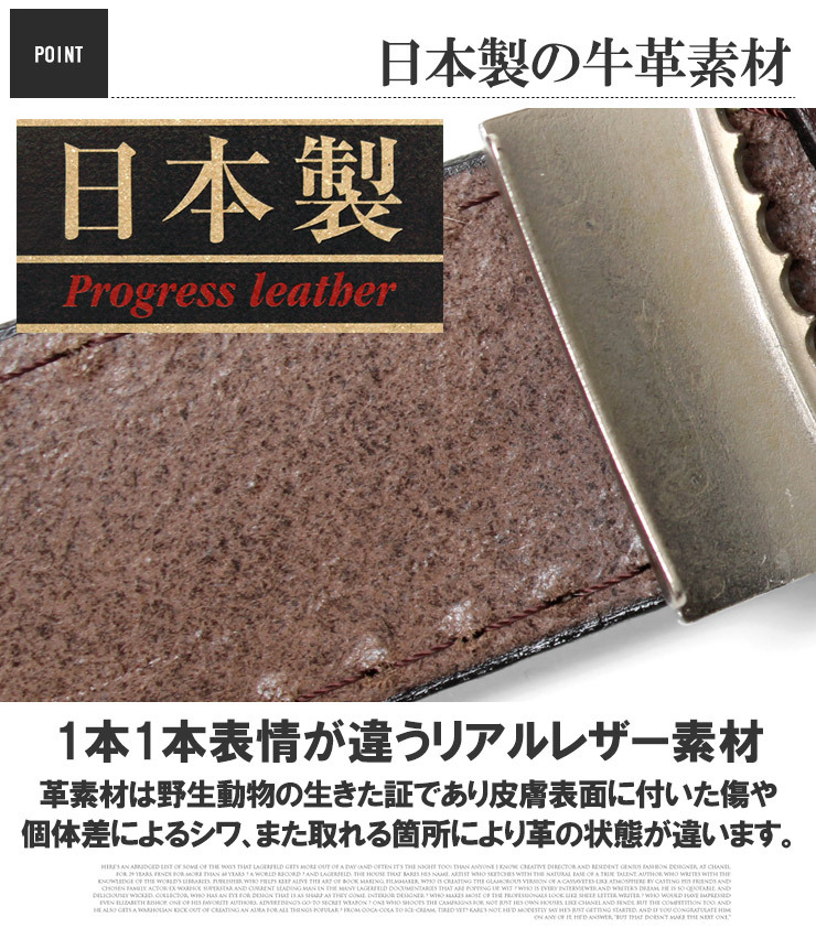 | 商品説明 | 本物志向のこだわりを感じられる、日本製のサイドステッチ本革ベルトです。 |