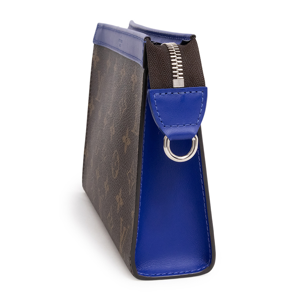 モノグラム・マカサー キャンバスで仕上げた「ガストン・ウェアラブル ウォレット」。上部とサイドにはカラフルなカウハイドレザーで彩りを添えられています。ファスナー付きメインコンパートメントに加え、交通系ICカードにぴったりの取外し可能なカードホルダーを備えた機能性の高さも魅力。