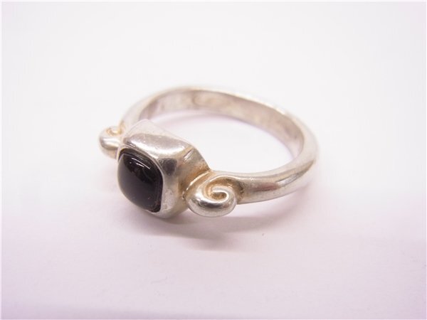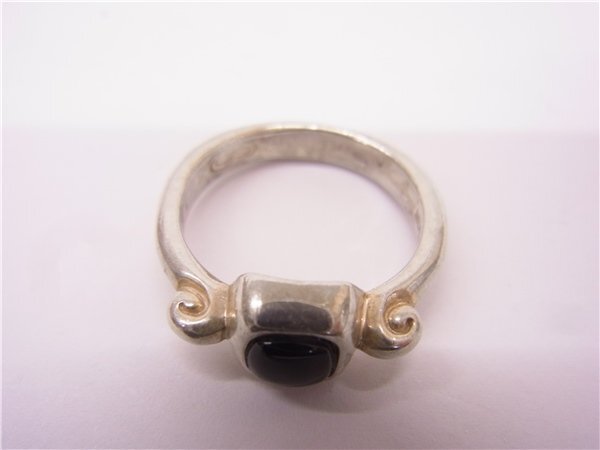 ◎レディース メンズ アクセサリー ◎ブラックストーン リング 指輪 約5.0g 約15号 SILVER刻印◎USED