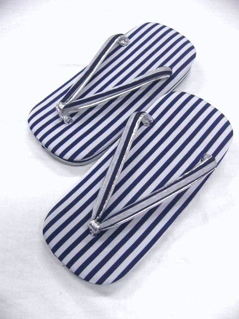 生地はポリエステル素材でグレーと濃紺色の縞模様になります。