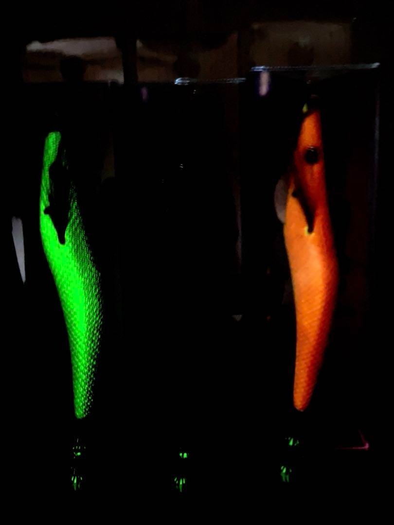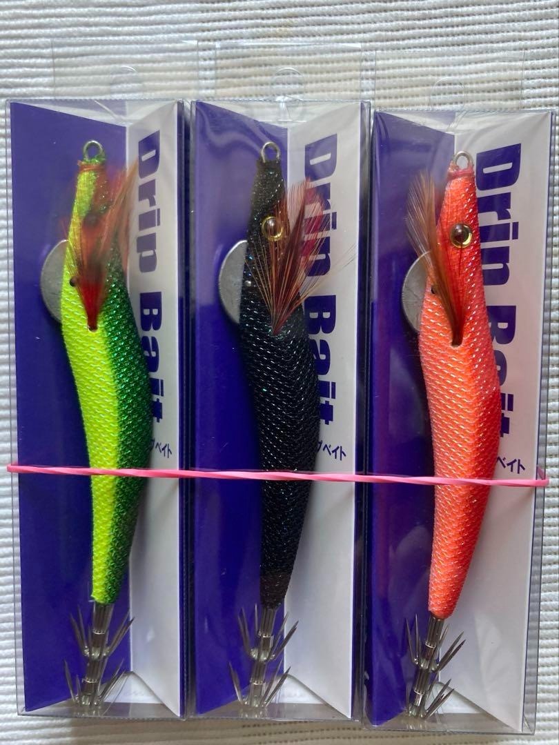 船の集魚灯に寄って来るベイトのほとんどが細い小魚、イワシやキビナゴである。シルエットをベイトに合わせ違和感を与えないようにしたいと考えているのが「ドリップベイト」である。