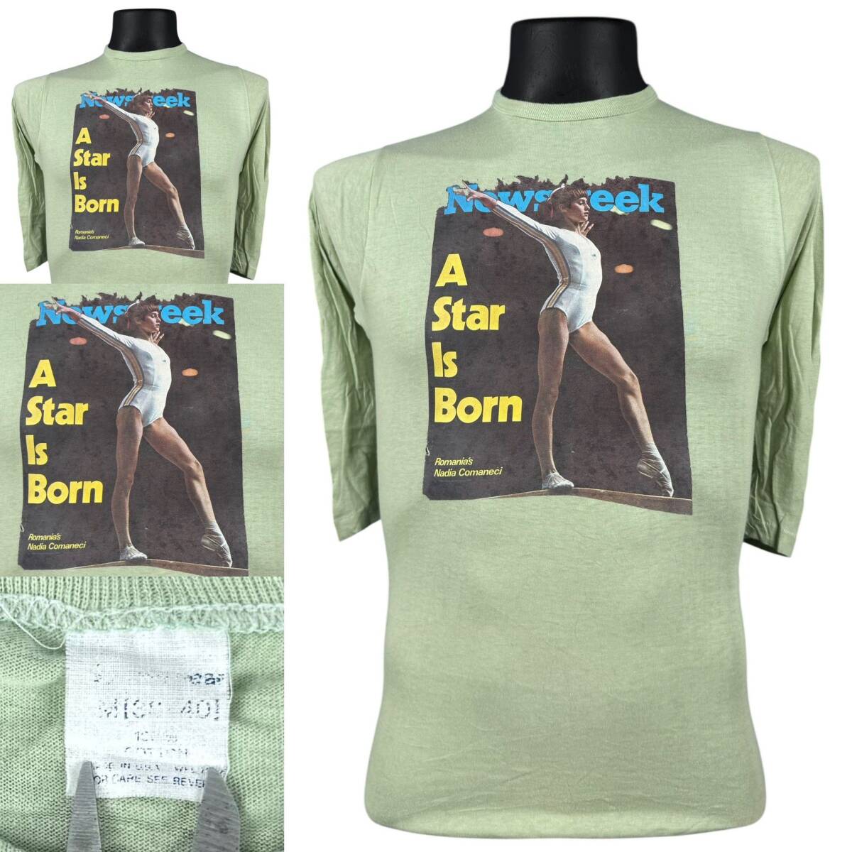 Nadia Comaneci Newsweek Cover VINTAGE コマネチ 1976年オリンピック 七分 ビンテージヴィンテージ プリントTシャツ ART ロック アート