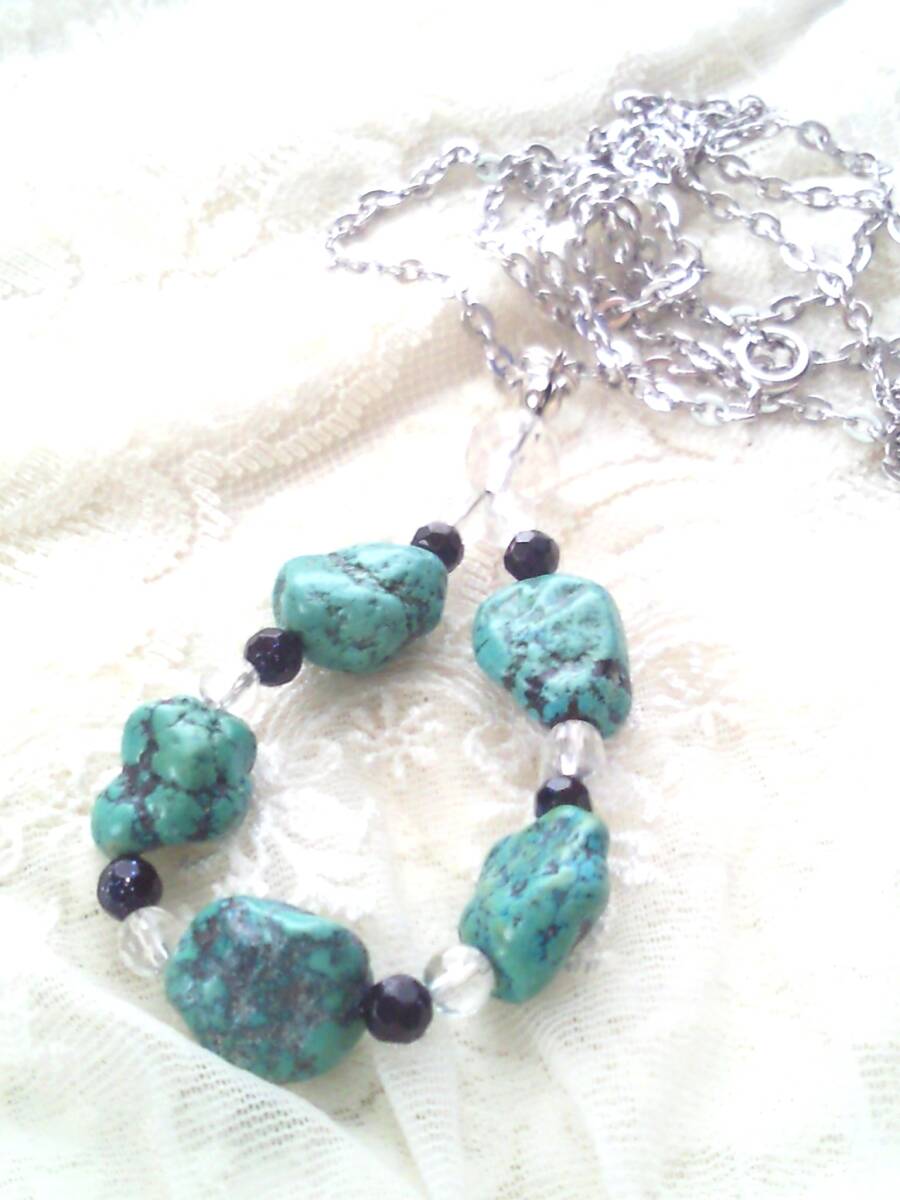 トルコ石ターコイズ原石ネックレス▲強運パワーストーン5石インディアンジュエリーネイティブ風ペンダント▲男女兼用品アンティーク▲送無