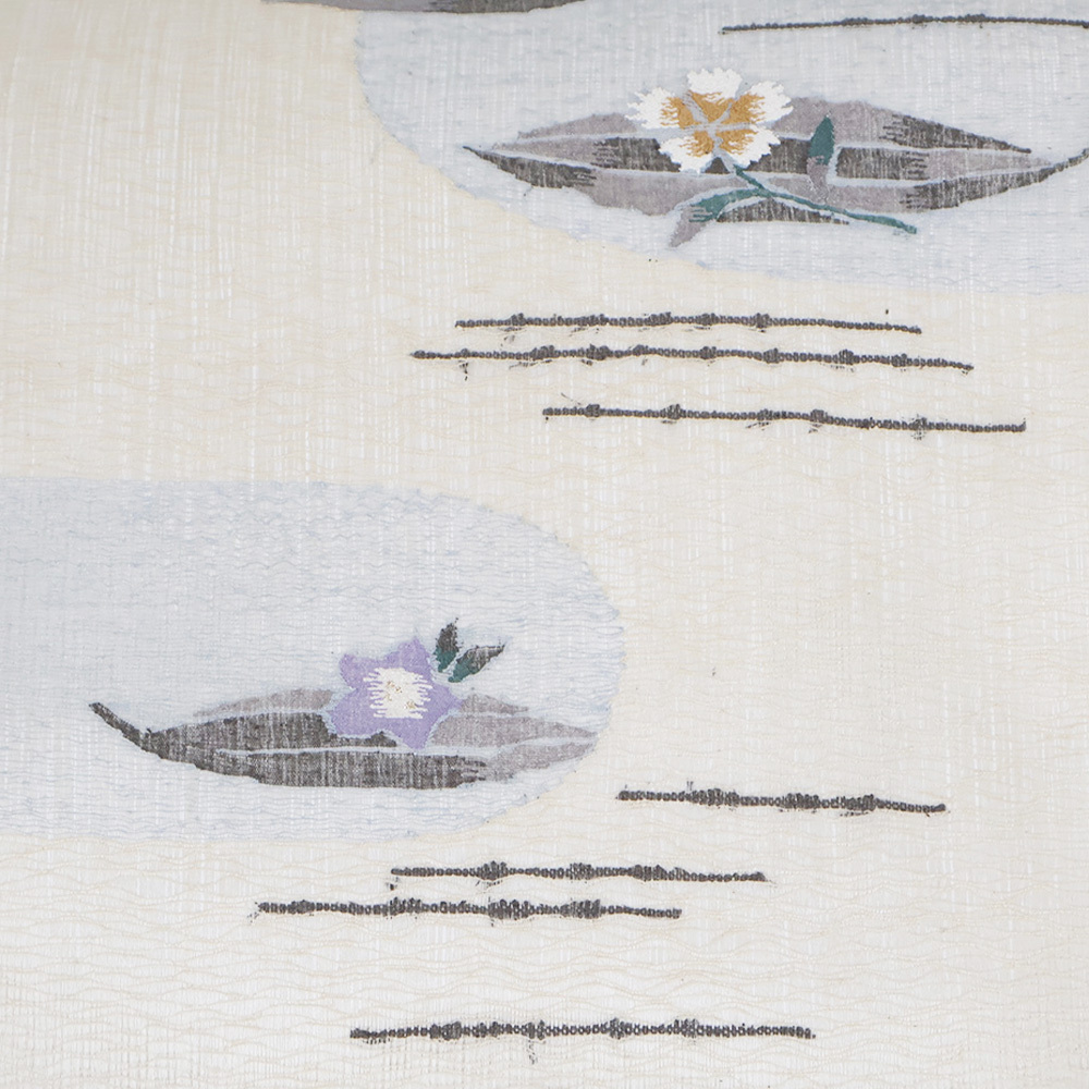 | 色・柄 | 紗 櫛織 袋帯 ベージュ地 花筏 桔梗・撫子・南天 (写真では上手く色が出ない場合があります。ご了承下さい) ※お使いのディスプレイの種類や設定の差により 実物の色と画像の色が少々異なることもございます。 |