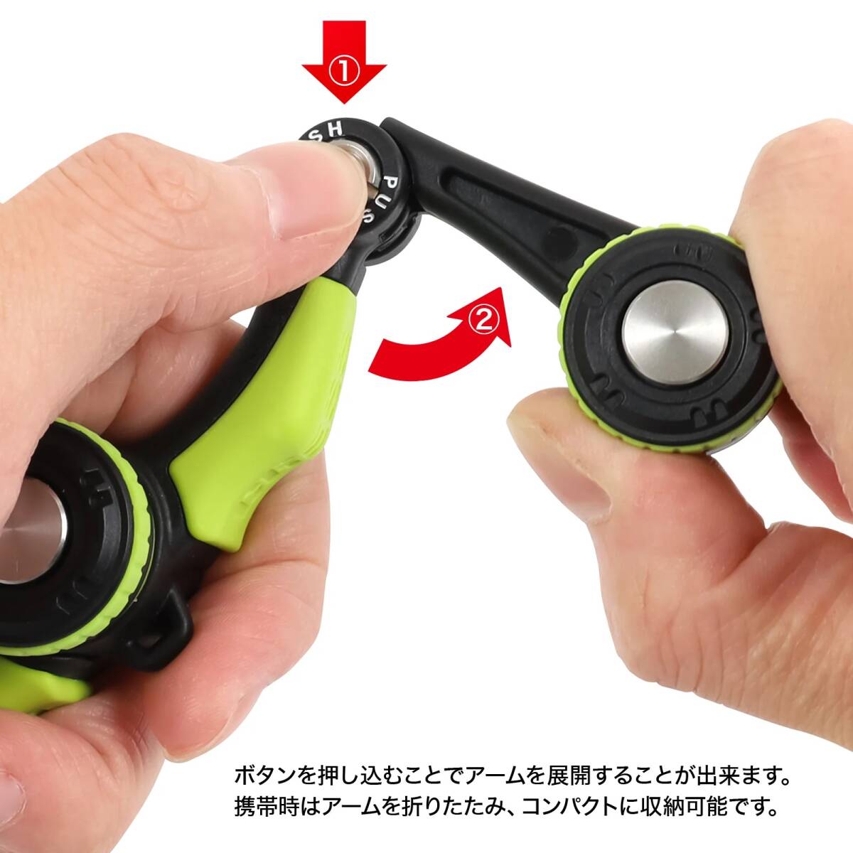 携帯時はアームを折りたたみ、コンパクトに収納可能です。