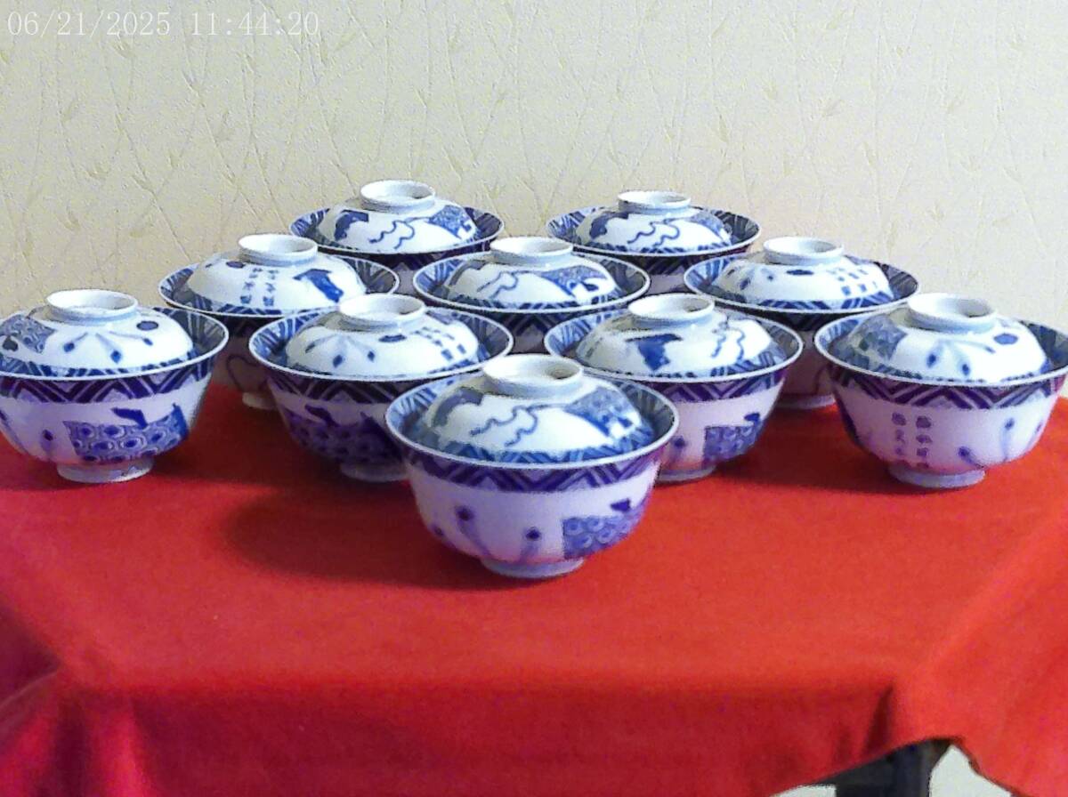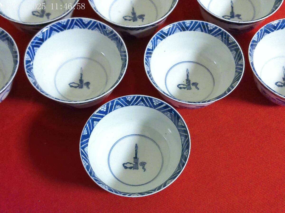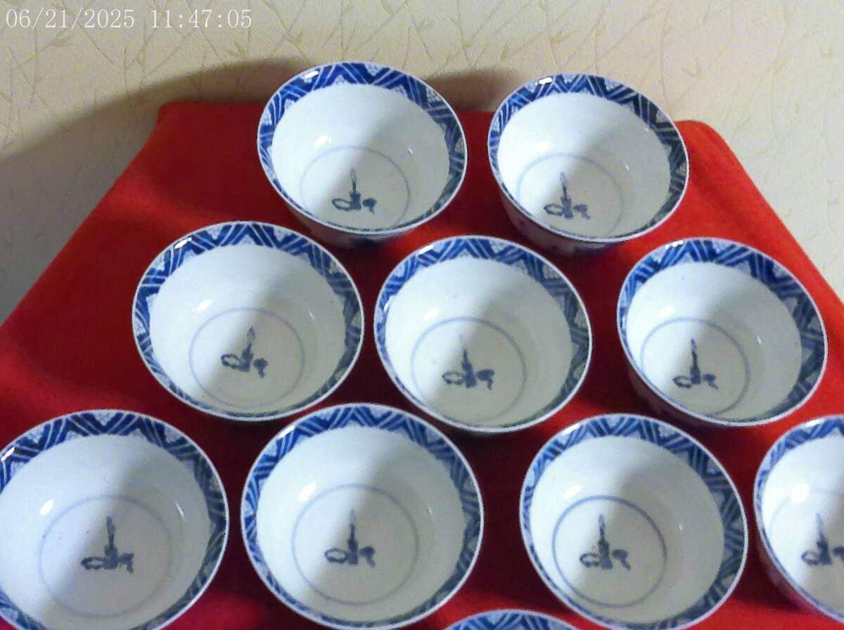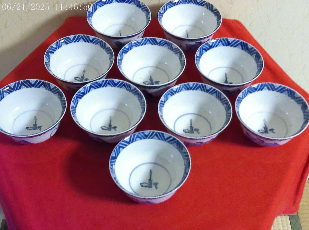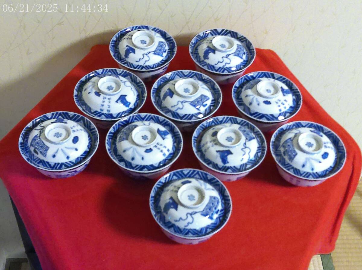 明治時代の古伊万里染付の蓋付茶碗10客セットの出品です。