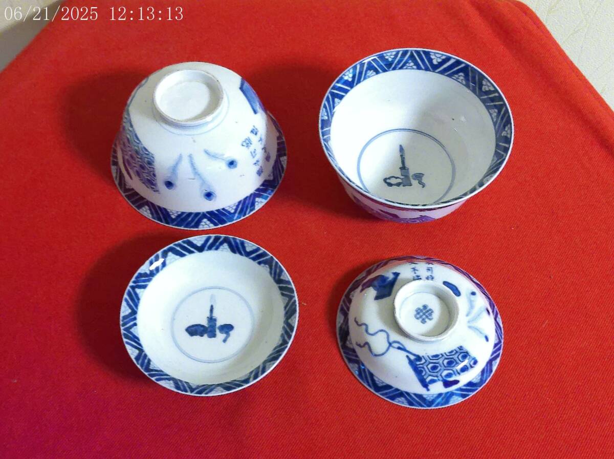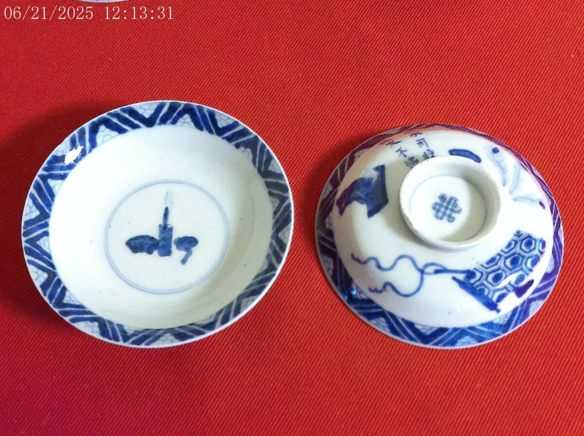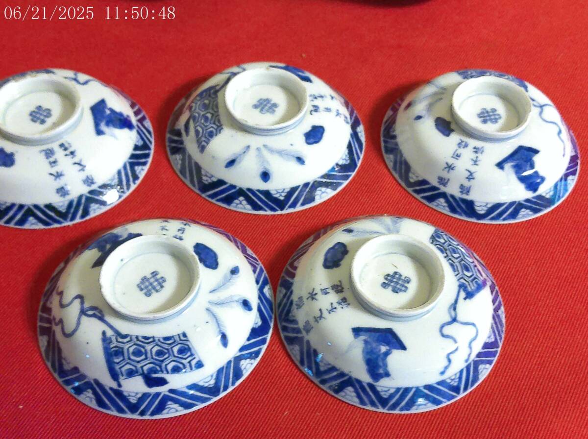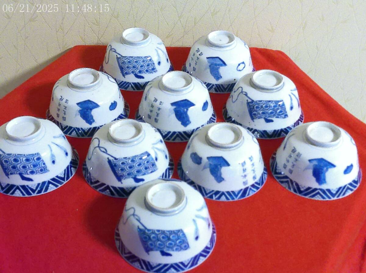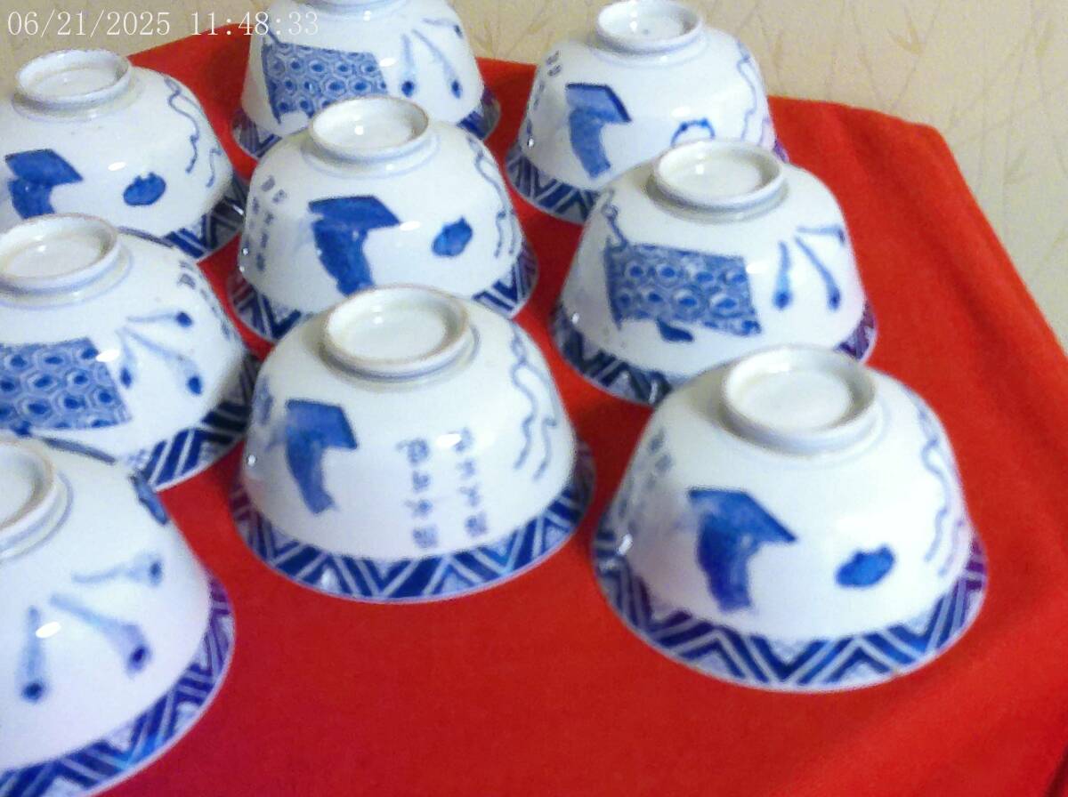明治時代の古伊万里染付の蓋付茶碗10客セットの出品です。